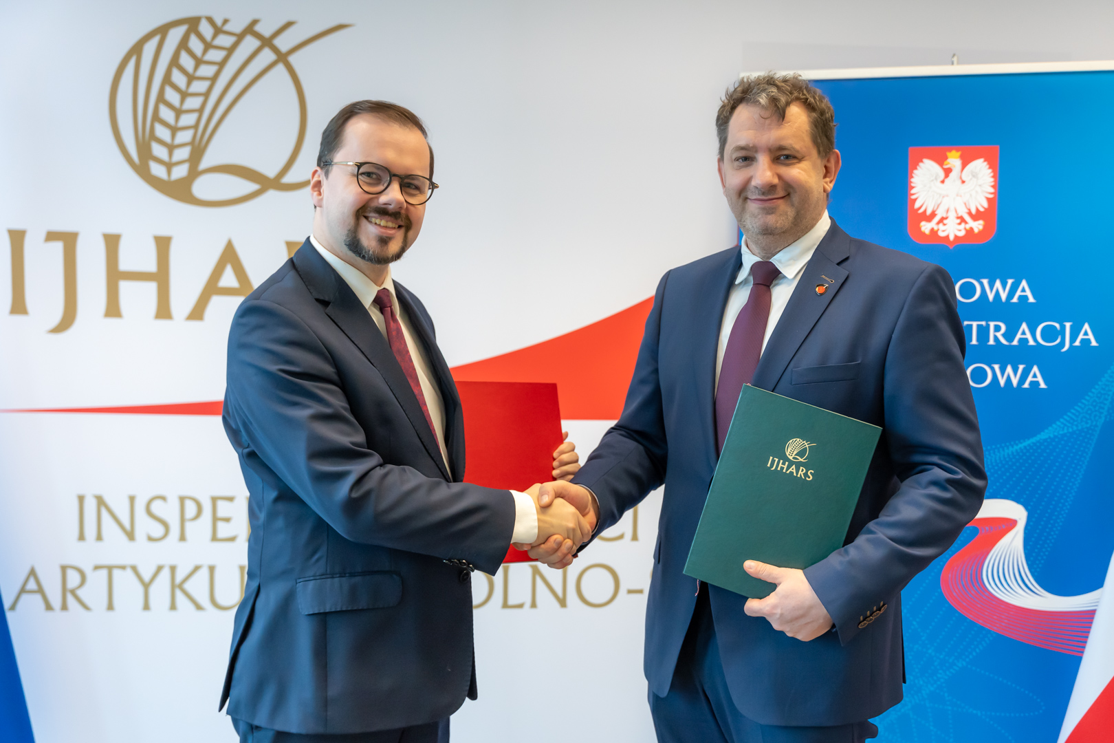 Szef Krajowej Administracji Skarbowej Marcin Łoboda oraz Główny Inspektor Jakości Handlowej Artykułów Rolno-Spożywczych Przemysław Rzodkiewicz podpisali porozumienie dotyczące korzystania z Platformy Koordynacji i Wymiany Danych - Single Window (PKWD-SINGLE WINDOW).