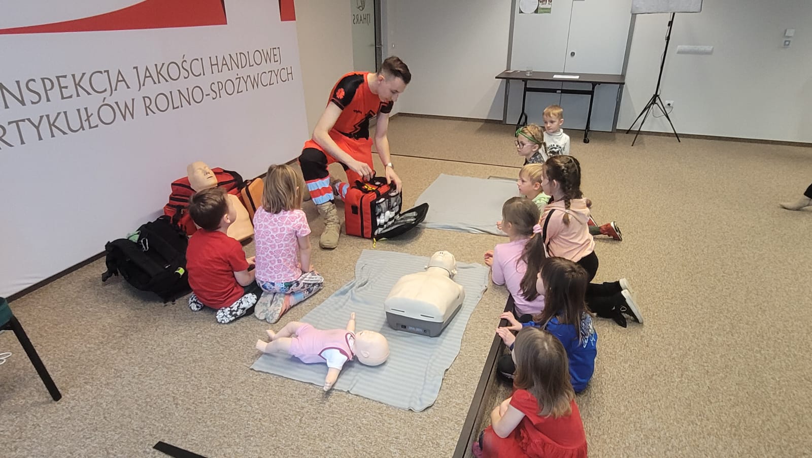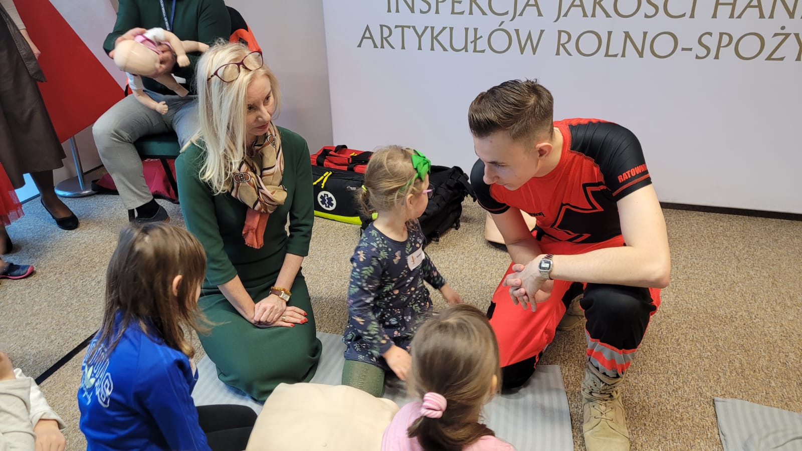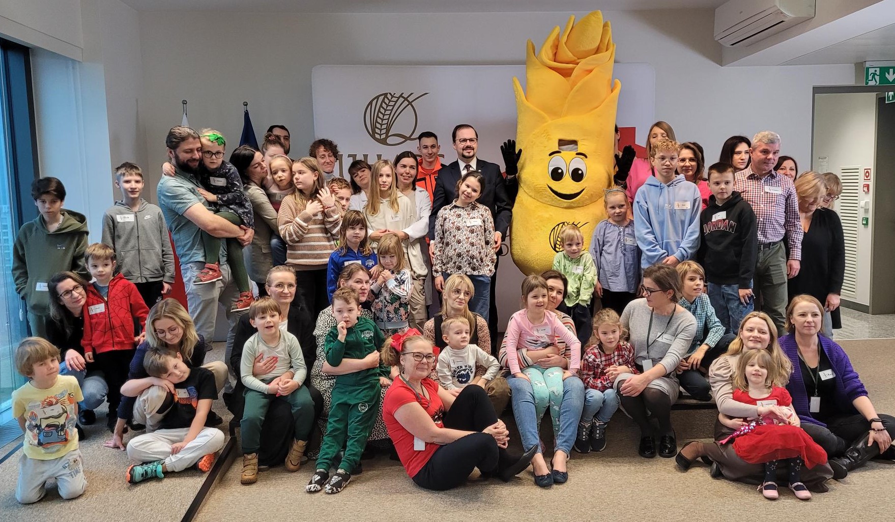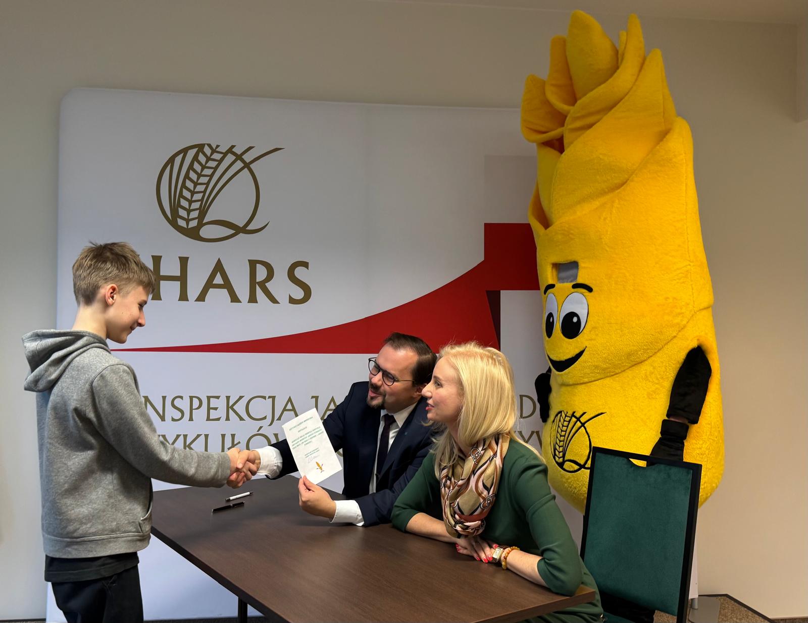 Młodych gości przywitał dr Przemysław Rzodkiewicz, Główny Inspektor wraz z bohaterem naszej Inspekcji, radosnym Kłosem Złotowłosem. Były pamiątkowe zdjęcia i przytulasy. A potem dzieciaki, podzielone na grupy wiekowe, ruszyły, aby poznać od samego środka funkcjonowanie poszczególnych Biur merytorycznych.