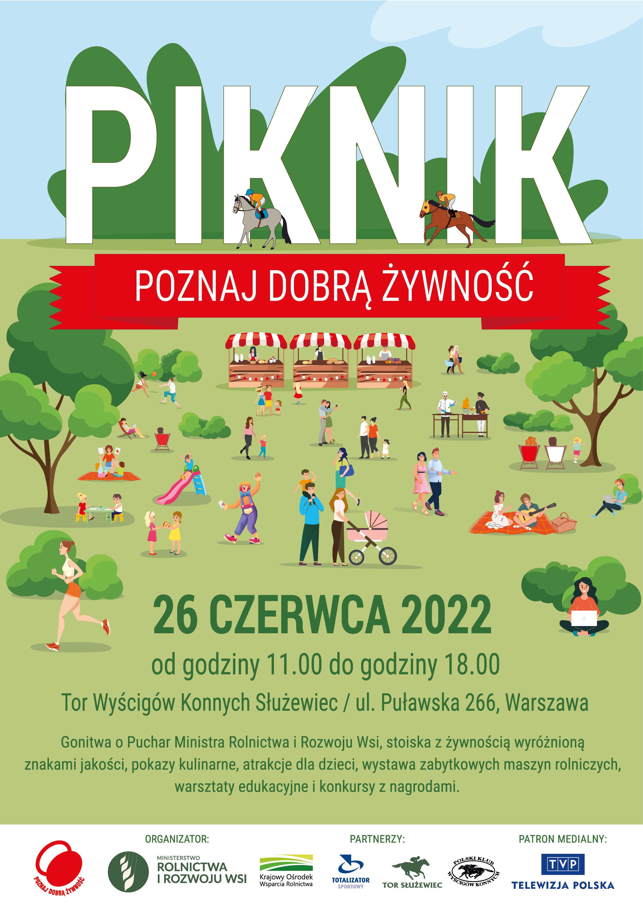 W najbliższą niedzielę 26 czerwca w godzinach 11-18 na Torze Wyścigów Konnych Służewiec (Warszawa, ul. Puławska 266) odbędzie się piknik Poznaj Dobrą Żywność.