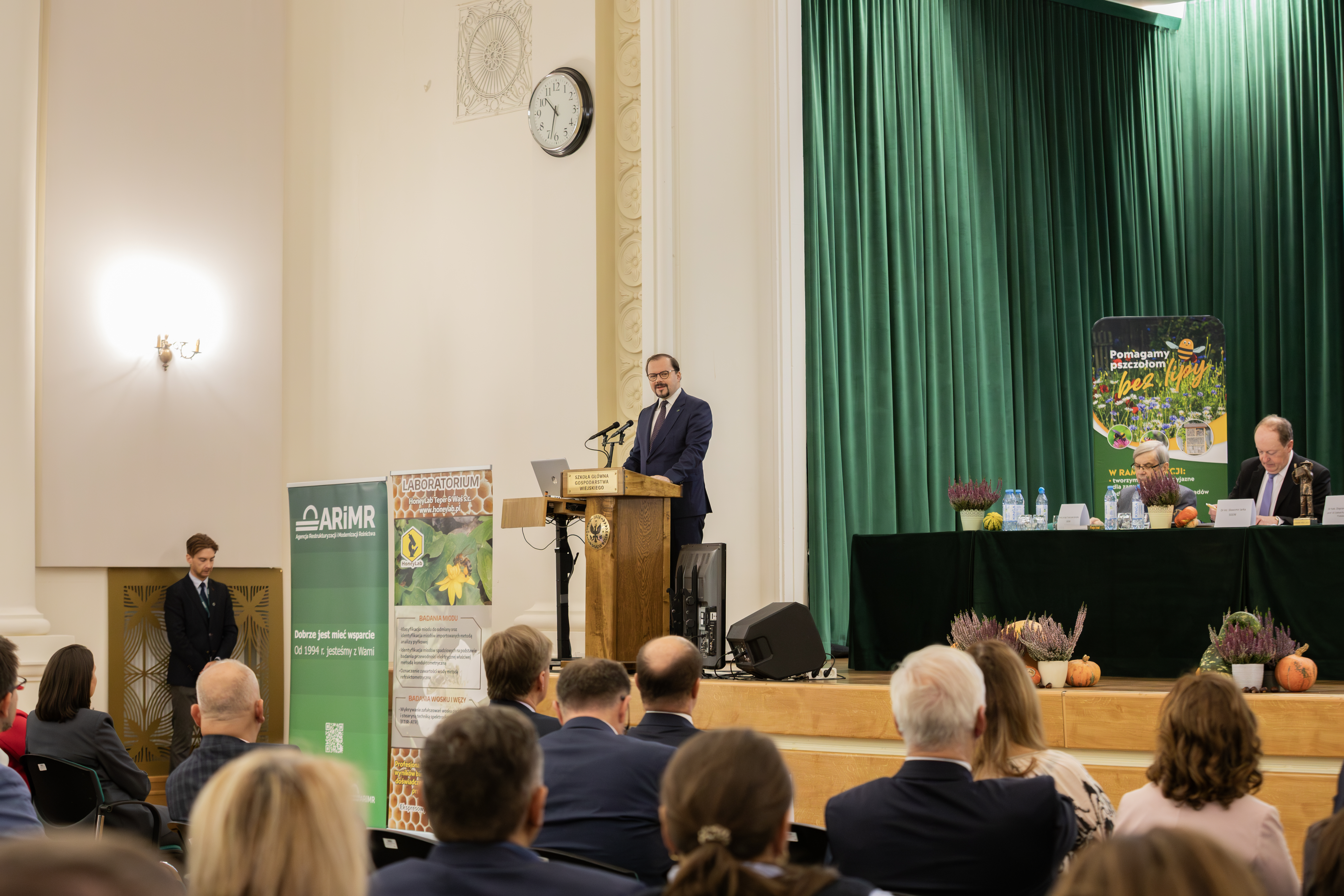 Podczas uroczystości otwarcia głos zabrał również dr Przemysław Rzodkiewicz, Główny Inspektor Jakości Handlowej Artykułów Rolno-Spożywczych, który podkreślił kluczową rolę pszczół i pszczelarzy w zapewnieniu bezpieczeństwa żywnościowego kraju.