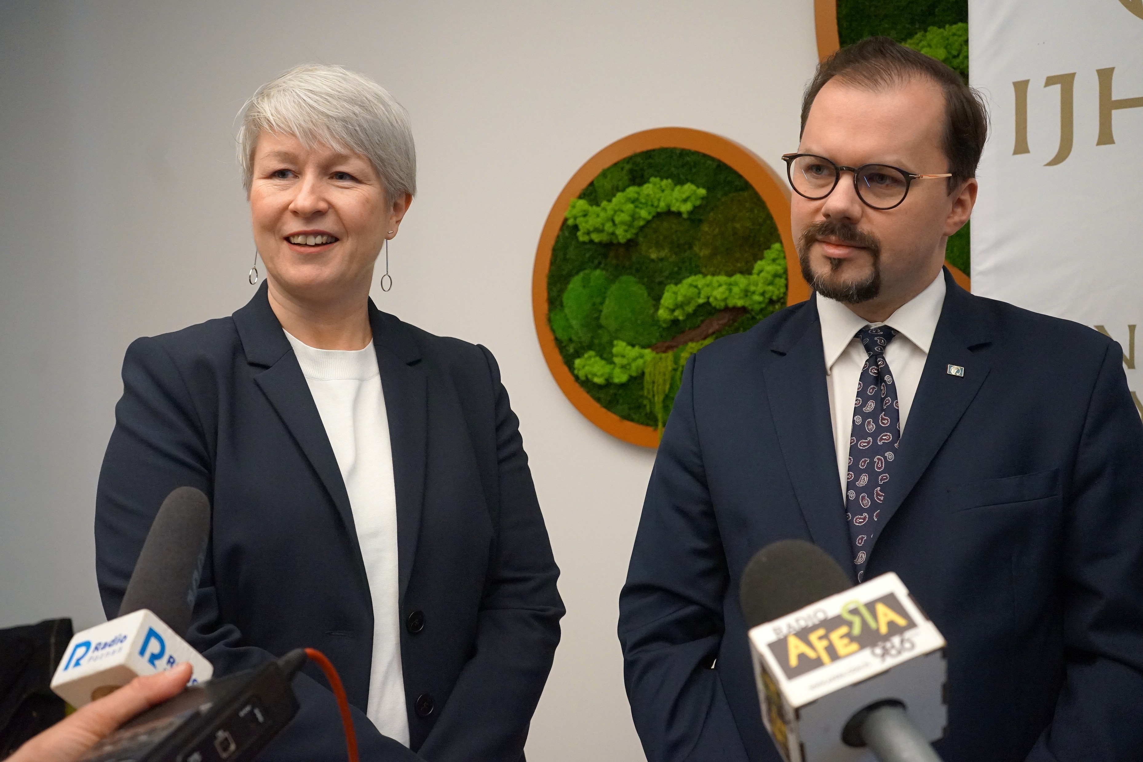 W czwartek, 16 stycznia 2024 r. dr Przemysław Rzodkiewicz, Główny Inspektor Jakości Handlowej Artykułów Rolno-Spożywczych oraz Jarosław Maciejewski, wicewojewoda wielkopolski, wizytowali nową siedzibę WIJHARS w Poznaniu, która od połowy grudnia 2024 r. jest dostępna dla szerokiego grona interesariuszy urzędu. W trakcie spotkania na miejscu odbył się krótki briefing dla przedstawicieli mediów z regionu.
