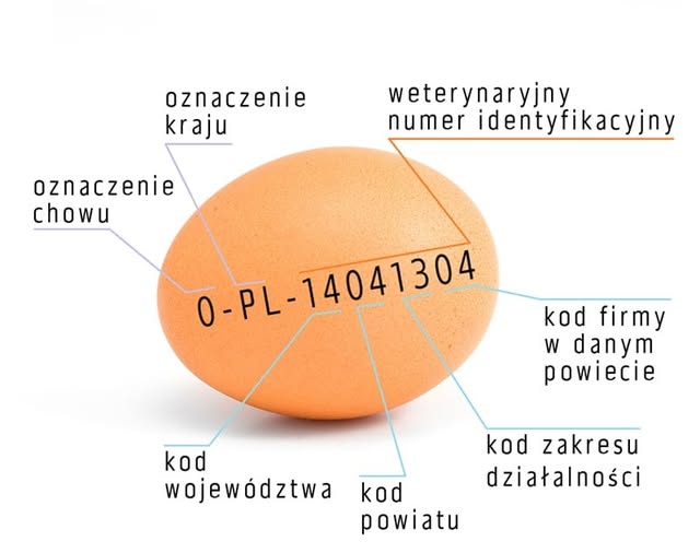 Jaja znakowane są kodem producenta „X-PL-ABCDEFGH” zawierającym 11 znaków, które oznaczają: