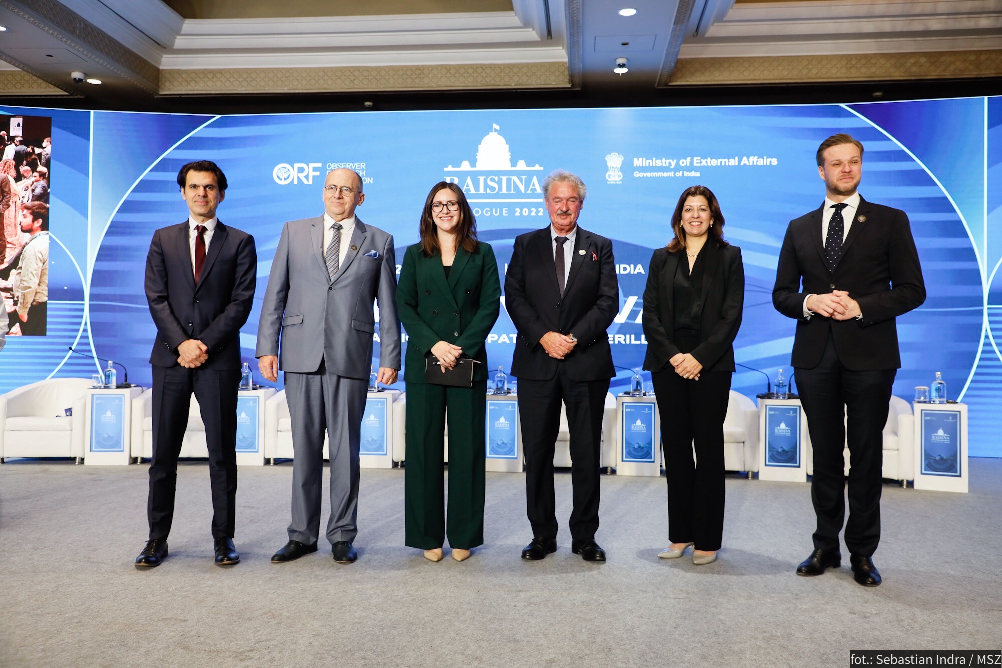 On the second day of his visit to New Delhi, Minister Zbigniew Rau took part in the international Raisina Dialogue conference, considered to be India’s largest forum on key geopolitical and economic issues. This year’s edition, whose honorary guest was President of the European Commission Ursula von der Leyen, focused on major challenges to the emerging new international order. During the conference, Minister Rau, as the OSCE Chairman-in-Office, presented the Organisation’s role in conflict resolution and Poland’s position on Russia’s aggression against Ukraine, as well as on its international implications. The chief of Polish diplomacy also participated in a discussion panel titled “The Brussels Effect. Compass for a Strategic Europe,” along with his counterparts from Lithuania and Luxembourg and the representatives of UK’s Chatham House and US-based Atlantic Council’s Europe Center. The panel was devoted to the EU’s current condition, as well as Poland’s and Central Europe’s role in the European Union.
