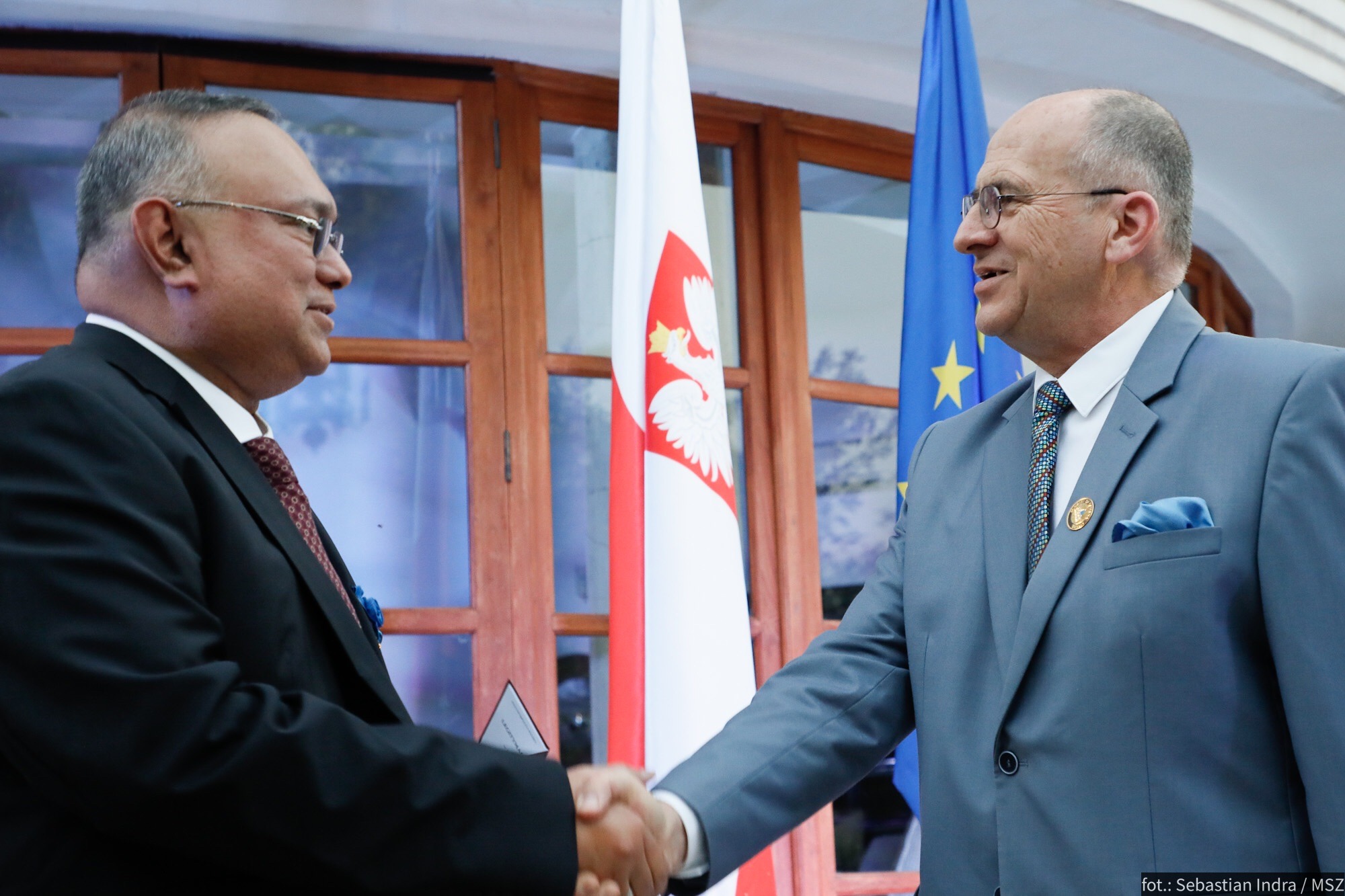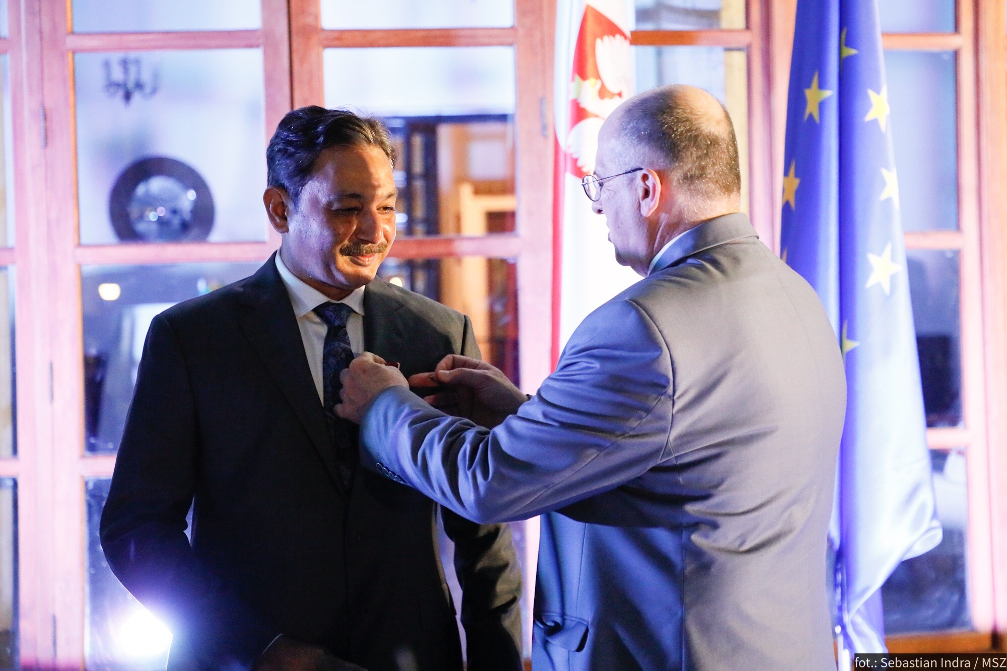 At an official reception hosted by Ambassador of Poland to India Adam Burakowski in honour of Foreign Minister Zbigniew Rau, Minister presented high Polish distinctions: Officer's Cross of the Order of Merit was awarded to the Honorary Consul in Bangladesh Reshadur Rahman and a member of the Upper House of the Parliament of Yuvraj Sambhajiraje Chhatrapati was honoured with the Bene Merito.