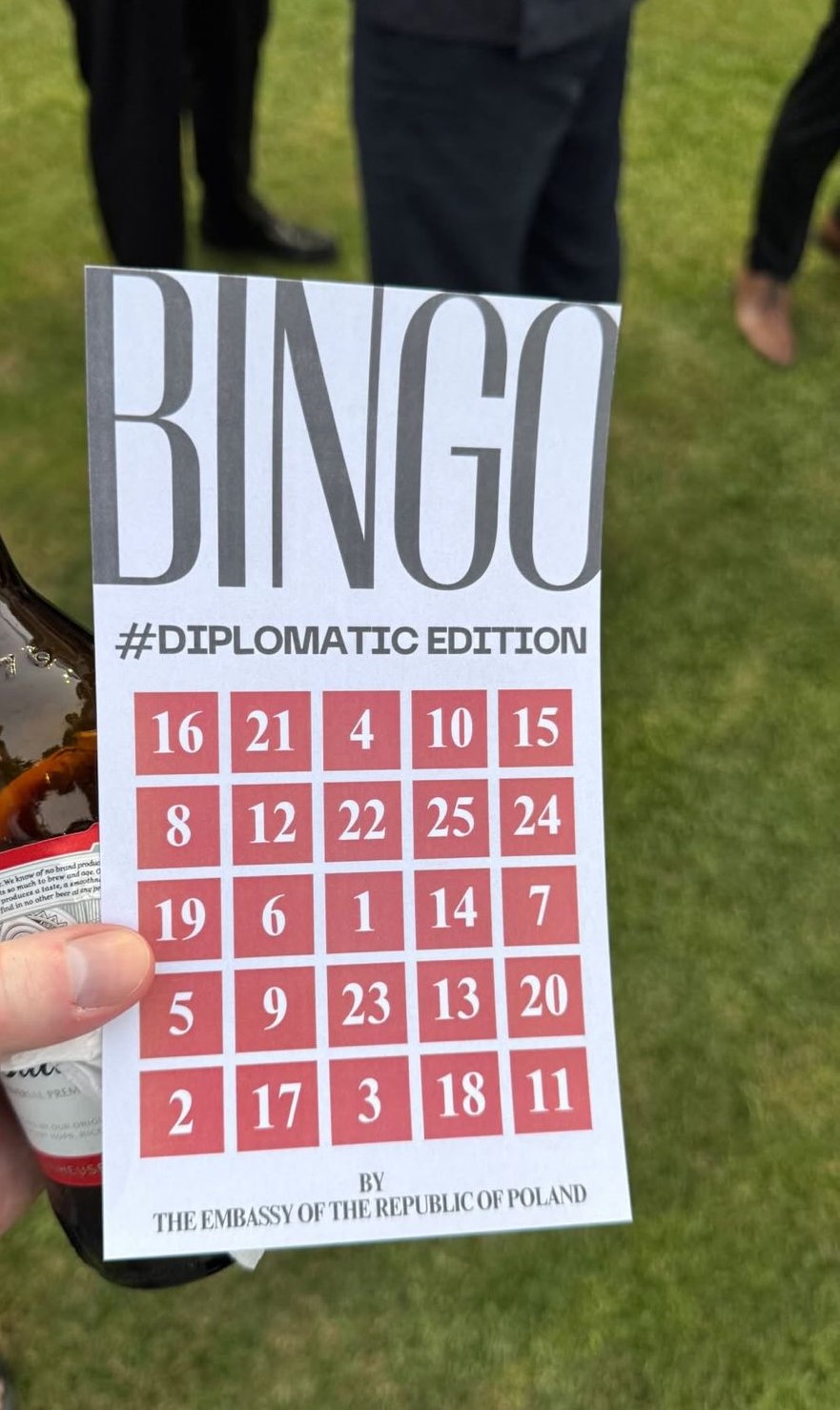 To encourage interaction and fun, attendees participated in networking games, including a lively round of diplomatic bingo, which sparked conversations and laughter throughout the evening. Guests also enjoyed a taste of Poland with traditional dishes served during the reception, including pierogi and Polish donuts. The event concluded with a reception, allowing participants to continue conversations in a relaxed setting, further cementing friendships and professional bonds across borders.