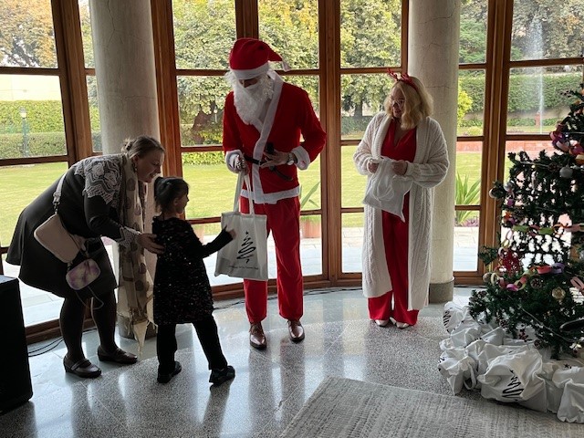 W spotkaniu w rezydencji Ambasadora RP w Indiach udział wzięli Polacy mieszkający i odwiedzający Delhi wraz z rodzinami. Goście mieli okazję skosztować tradycyjnych polskich potraw, przygotowanych przez ALMA Bakery & Cafe. Podczas spotkania nie zabrakło atrakcji dla najmłodszych - dzieci uczestniczyły we wspólnym dekorowaniu pierników oraz robieniu łańcucha na choinkę, którym ozdobiono świąteczne drzewko w rezydencji. Największym entuzjazmem cieszyła się wizyta Świętego Mikołaja, który każdemu dziecku wręczył prezent. Ciepła i radosna atmosfera została dopełniona przez wspólne śpiewanie kolęd i piosenek świątecznych.