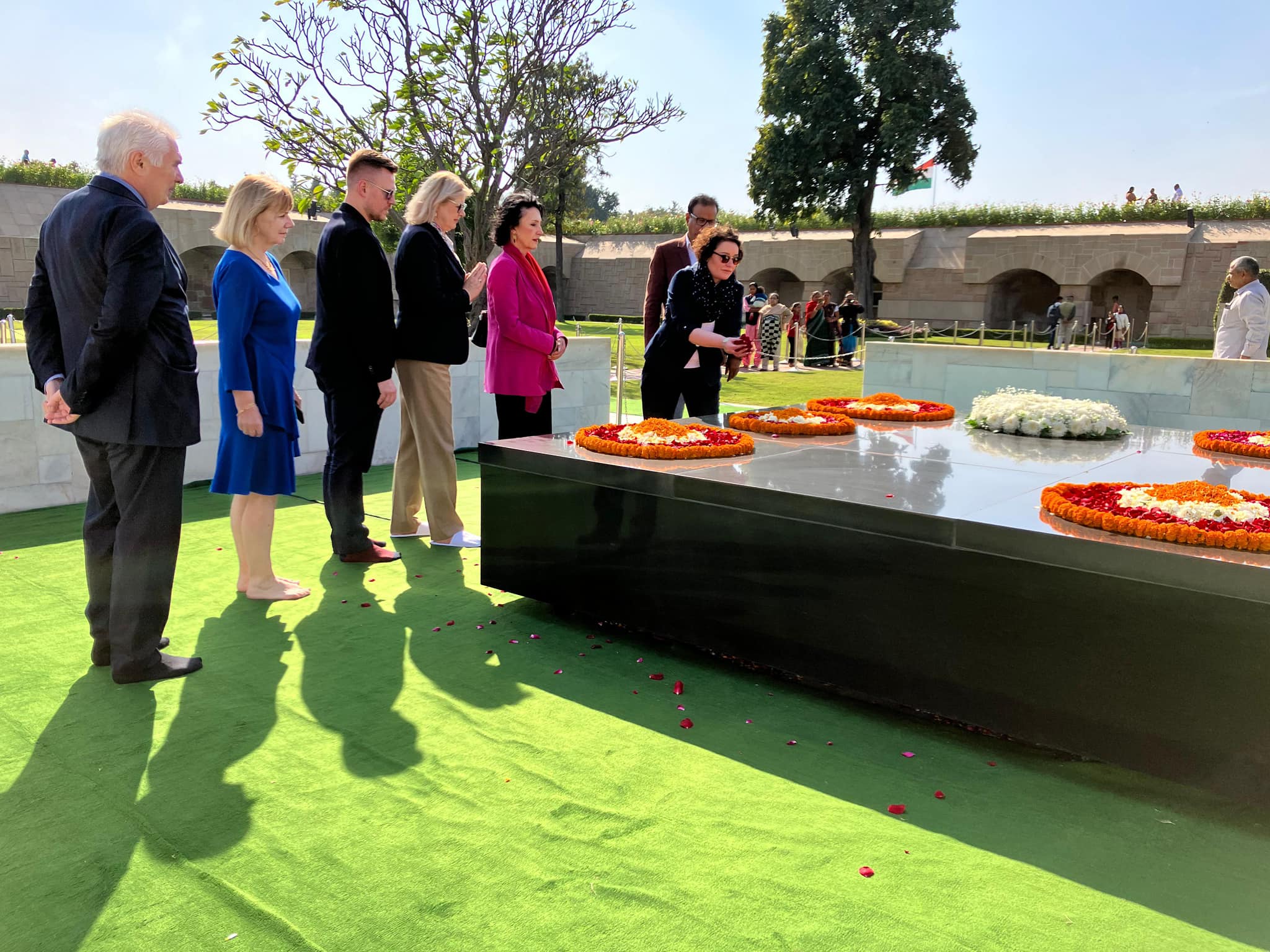 Delegacja złożyła hołd Mahatmie Gandhiemu składając wieniec w miejscu jego kremacji na Raj Ghat.