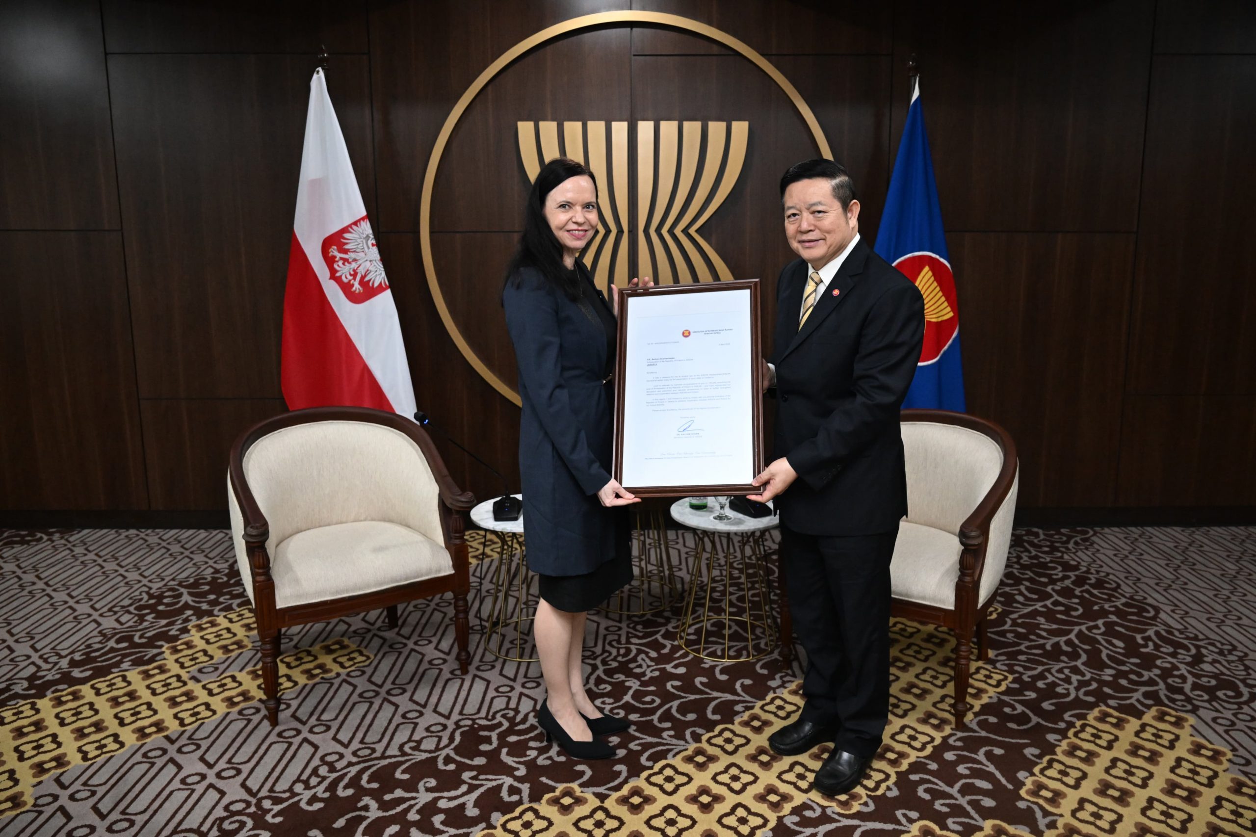 On April 2, 2026, at the Secretariat of the Association of Southeast Asian Nations (ASEAN) in Jakarta, the Ambassador of the Republic of Poland, Ms. Barbara Szymanowska, presented her letters of credence to the Secretary-General of the organization, Mr. Kao Kim Hourn.