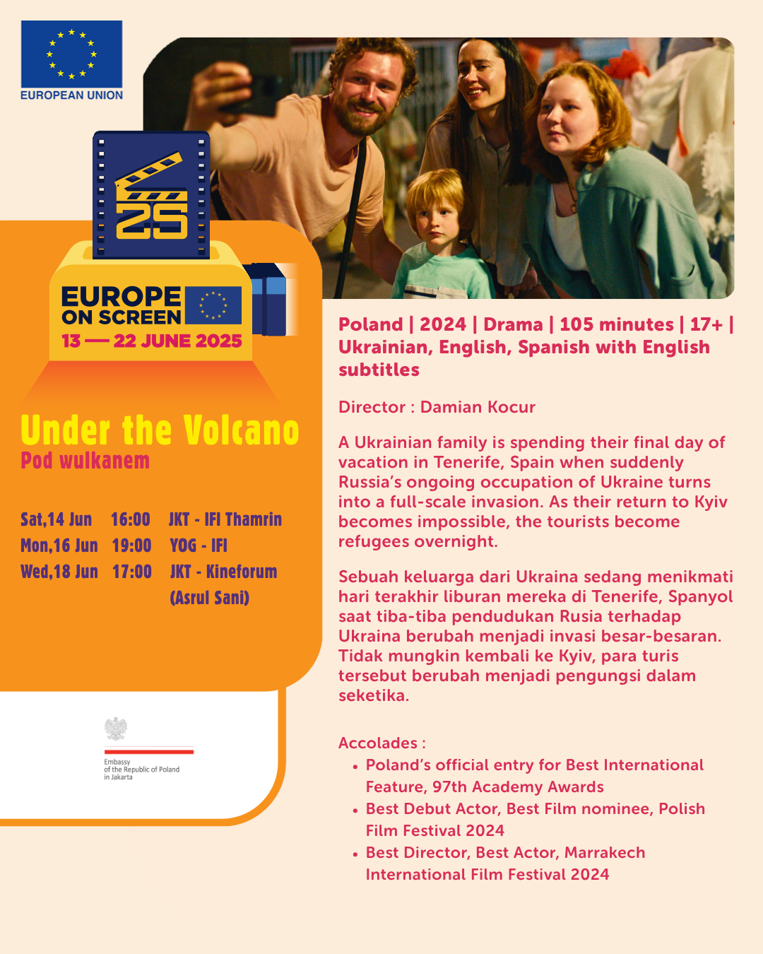 W dniach 13–22 czerwca w siedmiu miastach Indonezji odbyła się 25. edycja festiwalu Europe on Screen – największego i najważniejszego projektu Delegatury Unii Europejskiej w Indonezji. Festiwal, będący świętem europejskiej kultury filmowej i platformą dialogu międzykulturowego, zgromadził liczną publiczność i okazał się sukcesem zarówno frekwencyjnym, jak i organizacyjnym.