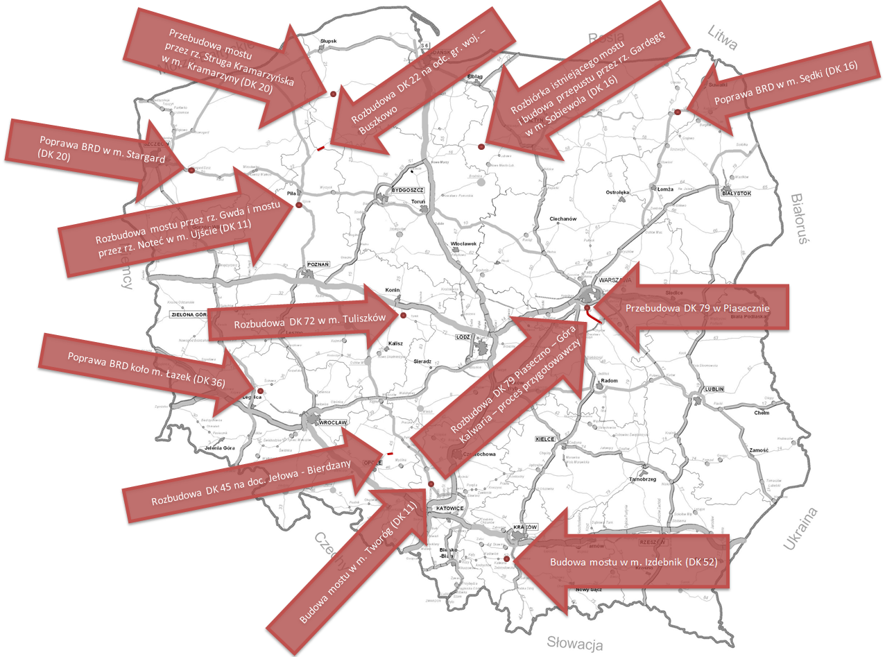 Zadania te będą realizowane w województwach: zachodniopomorskim, pomorskim, warmińsko-mazurskim, wielkopolskim, mazowieckim, dolnośląskim, opolskim, śląskim oraz małopolskim.