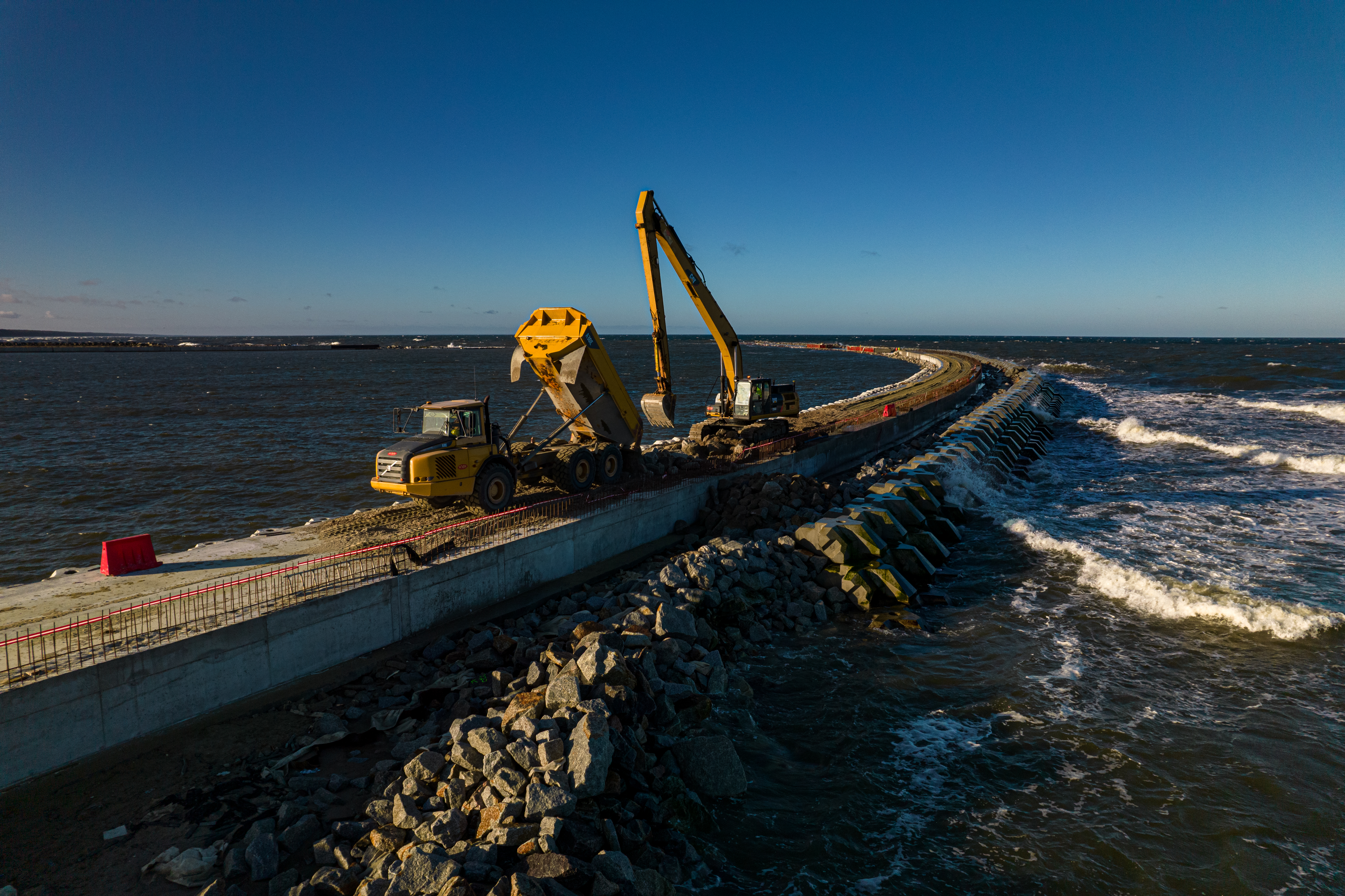 Powstały dwa unikatowe w skali kraju mosty obrotowe. Na Falochronie Wschodnim i Zachodnim, gdzie po raz drugi na świecie wykorzystuje się betonowe bloki „x-block plus”, zakończono pogrążanie ścianek szczelnych. W śluzie, która stanowi serce inwestycji, zrealizowano większość prac żelbetowych i zamontowano dwie bramy. Tak wyglądał 2021 r. na budowie przekopu Mierzei Wiślanej. Prowadzone były także prace m.in. przy budowie sztucznej wyspy, kanału żeglugowego czy budynku Kapitanatu Nowy Świat. W prace te zaangażowanych było ponad 2,8 tys. osób.