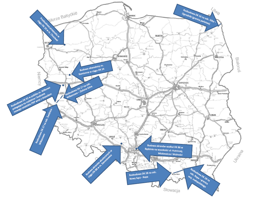 - Rozbudowa DK 16 na odc. Giby – Ogrodniki (granica państwa)