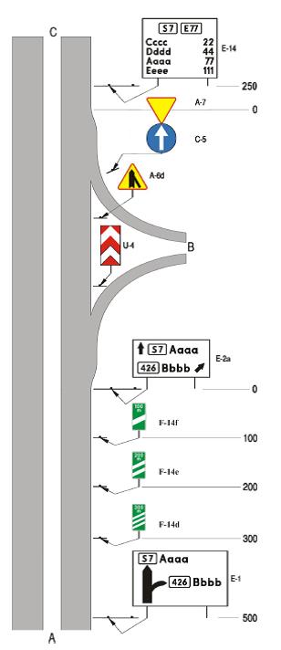 F-14d–f tablice wskaźnikowe na drodze ekspresowej umieszczane przed pasem wyłączania