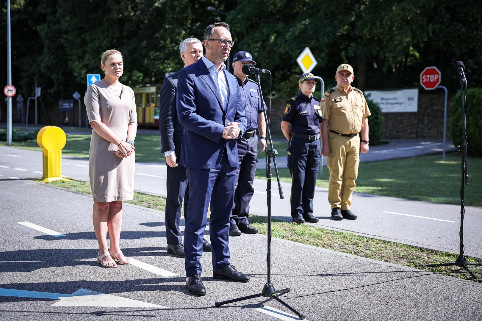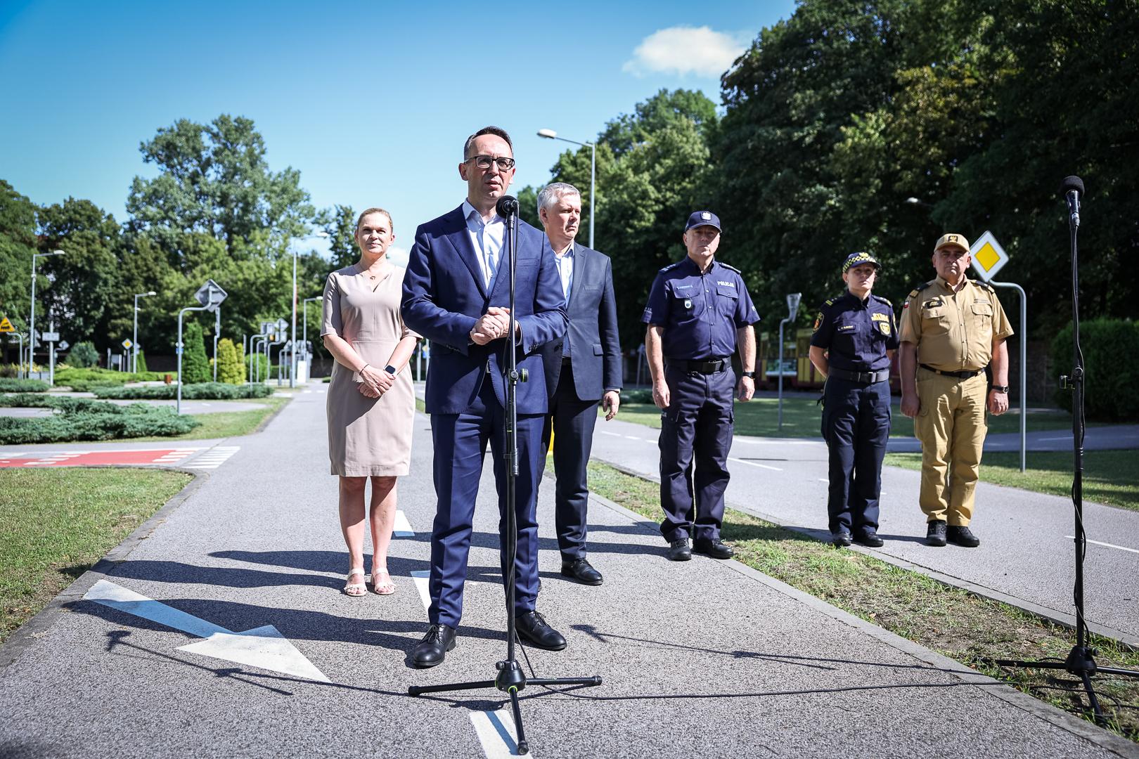 O prawidłowym zachowaniu dzieci na drodze, bezpiecznym wypoczynku nad wodą oraz o kontrolach uprawnionych służb mówili 18 lipca 2024 r. podczas konferencji zorganizowanej w Miasteczku Ruchu Drogowego na warszawskiej Woli minister infrastruktury Dariusz Klimczak, ministra edukacji Barbara Nowacka i minister spraw wewnętrznych i administracji Tomasz Siemoniak.