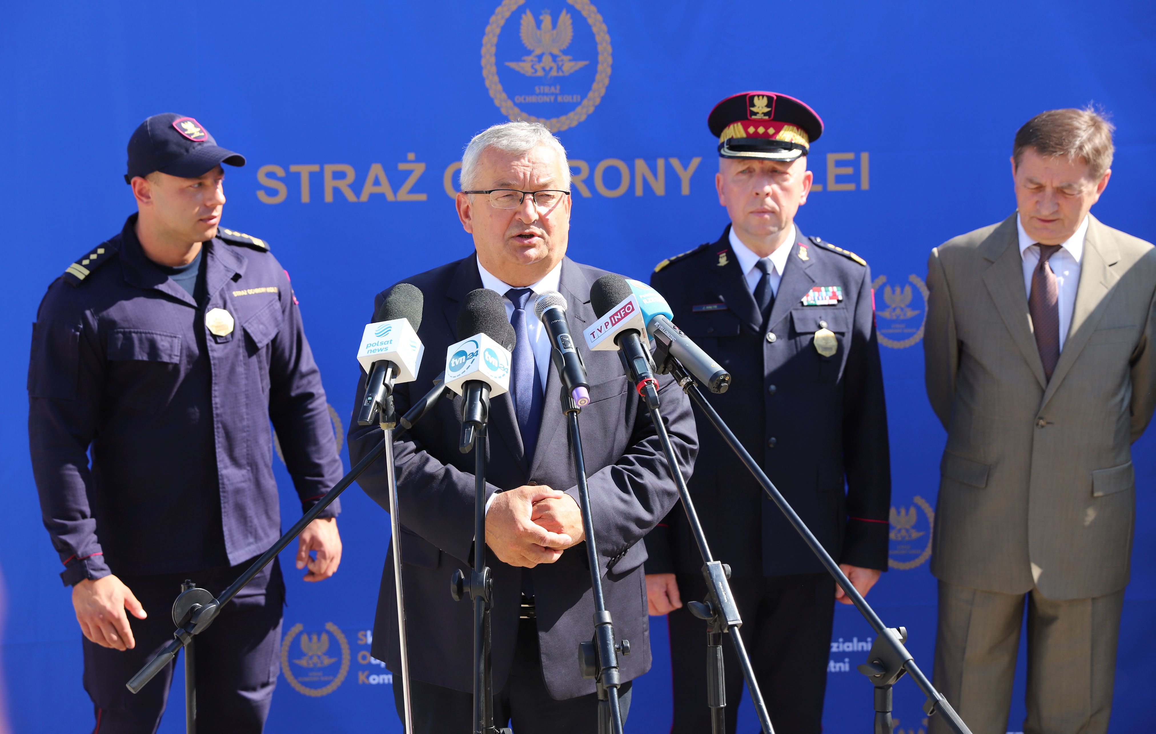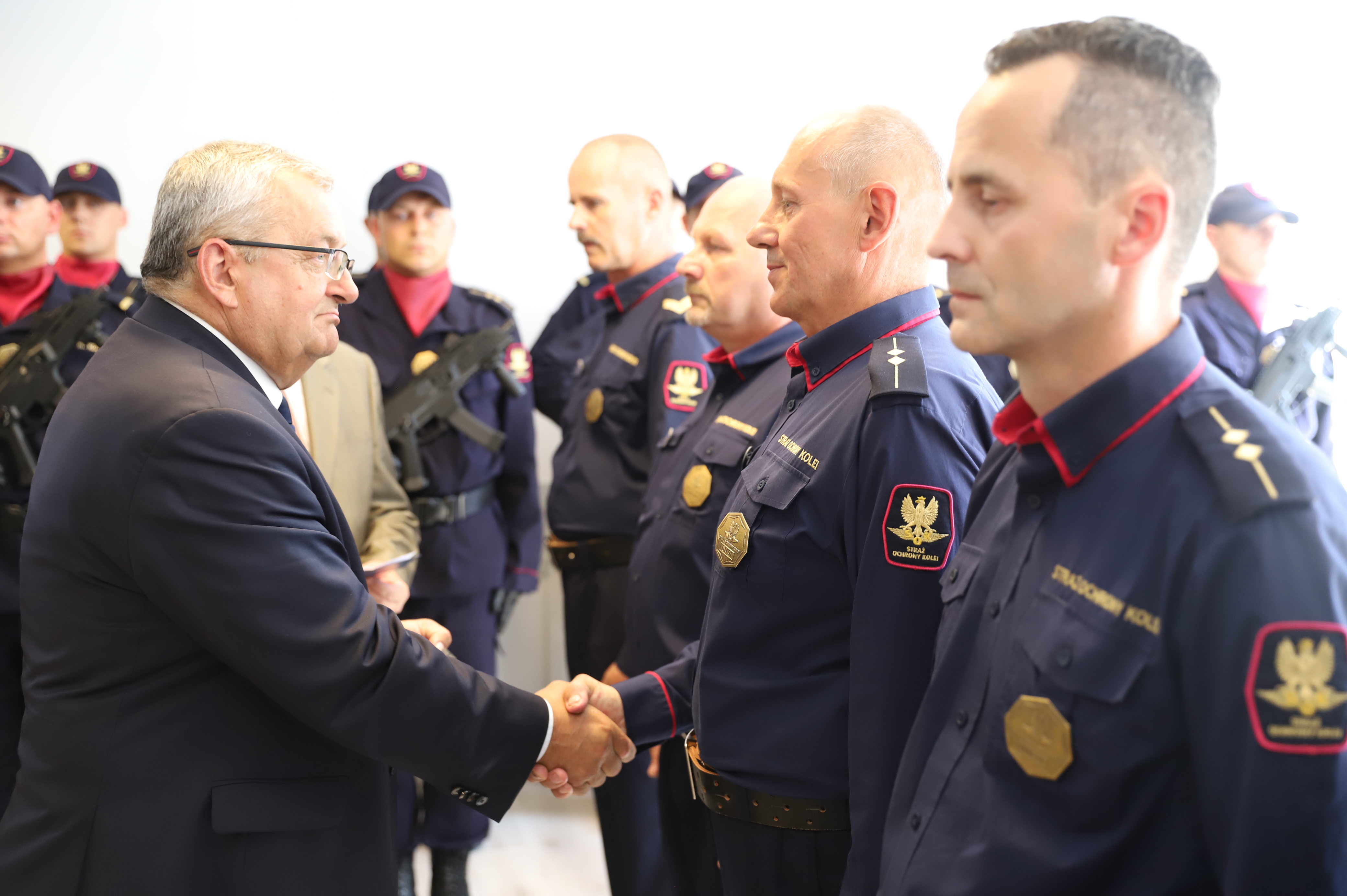Szef KPRM Marek Kuchciński podkreślał znaczenie Straży Ochrony Kolei w regionach przygranicznych oraz konieczność prowadzenia inwestycji w rozwój służby.