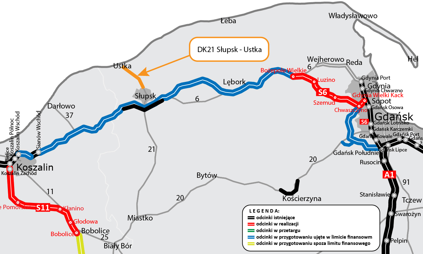 Na podstawie podjętej w październiku 2016 roku decyzji Ministra Infrastruktury rozbudowana zostanie droga krajowa nr 21 na odcinku o długości ponad 13 km, łączącym Słupsk i Ustkę