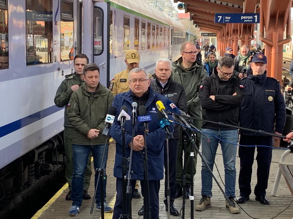 PKP Intercity realizuje połączenia między Polską a Ukrainą zgodnie z obowiązującym rozkładem jazdy. Przewoźnik jest przygotowany do wzmocnień połączeń na odcinkach krajowych. Do Przemyśla zostało wysłanych dodatkowych 20 wagonów. Spółka współpracuje z władzami RP w przedsięwzięciach, które mają zapewnić sprawność działania, a także z władzami lokalnymi i centrum zarządzania kryzysowego w Przemyślu. Dodatkowi pracownicy PKP Intercity, którzy są na dworcu w Przemyślu, m.in. koordynują realizację przewozów, kierują potokami podróżnych i dokonują odprawy pasażerów. Na bieżąco monitorowane są aktualne potoki podróżnych i wzmacniane pociągi dodatkowymi wagonami.