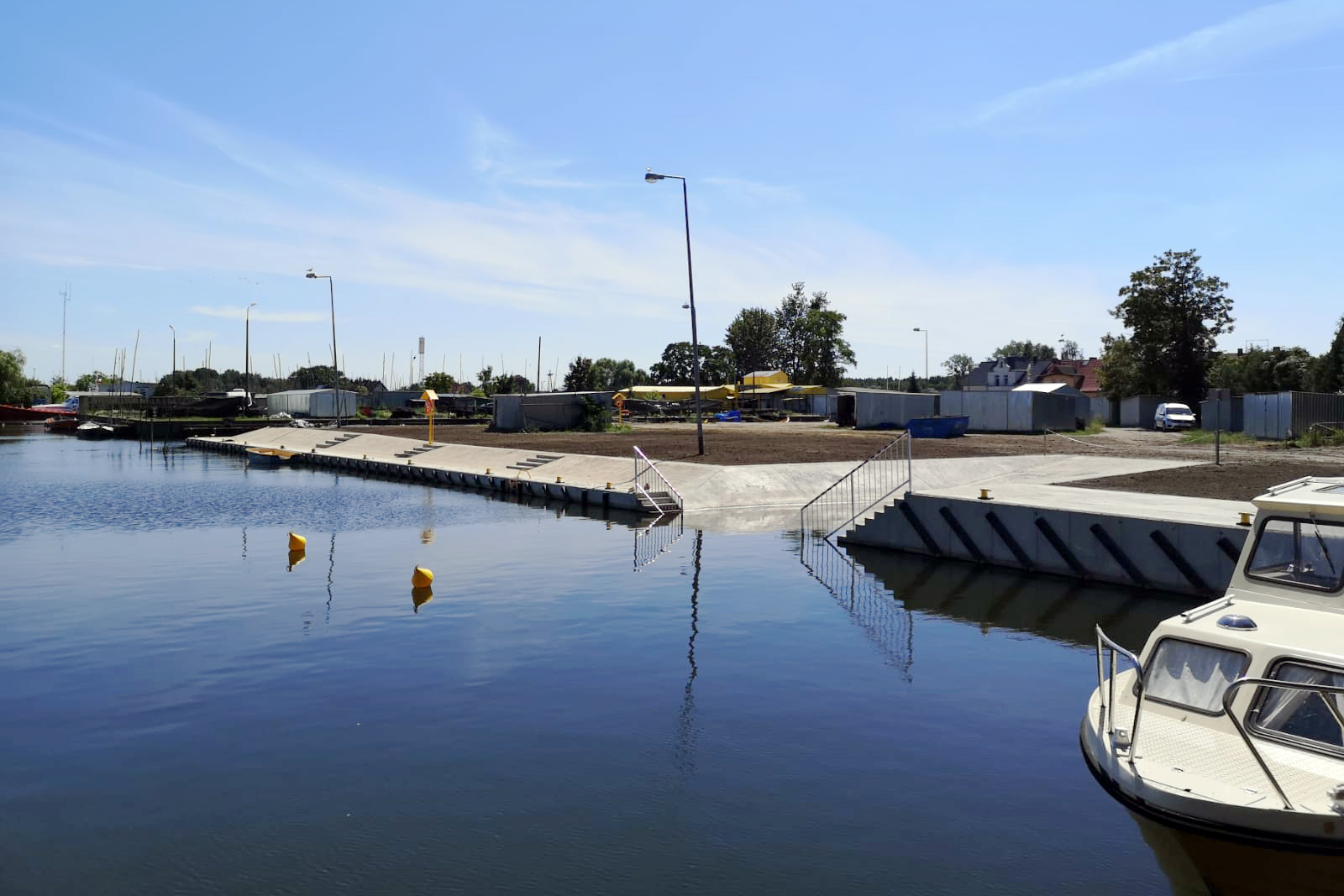 Przebudowano dwa nabrzeża o łącznej długości ponad 185 metrów wraz z niezbędną infrastrukturą. Nabrzeża zostały wyposażone w pachoły cumownicze, belki odbojowe, drabinki wyjściowe i stanowiska ratownicze. W części zachodniej nabrzeża w basenie nr 1 przebudowano także slip do wodowania i wyciągania z wody jednostek pływających, głównie kutrów rybackich. Koszt przebudowy to ponad 3,8 mln zł. Na torach podejściowych do portu wykonano również prace czerpalno-refulacyjne, o łącznej kubaturze ponad 34 tys. metrów sześciennych. Ich koszt to ponad 1,4 mln zł.