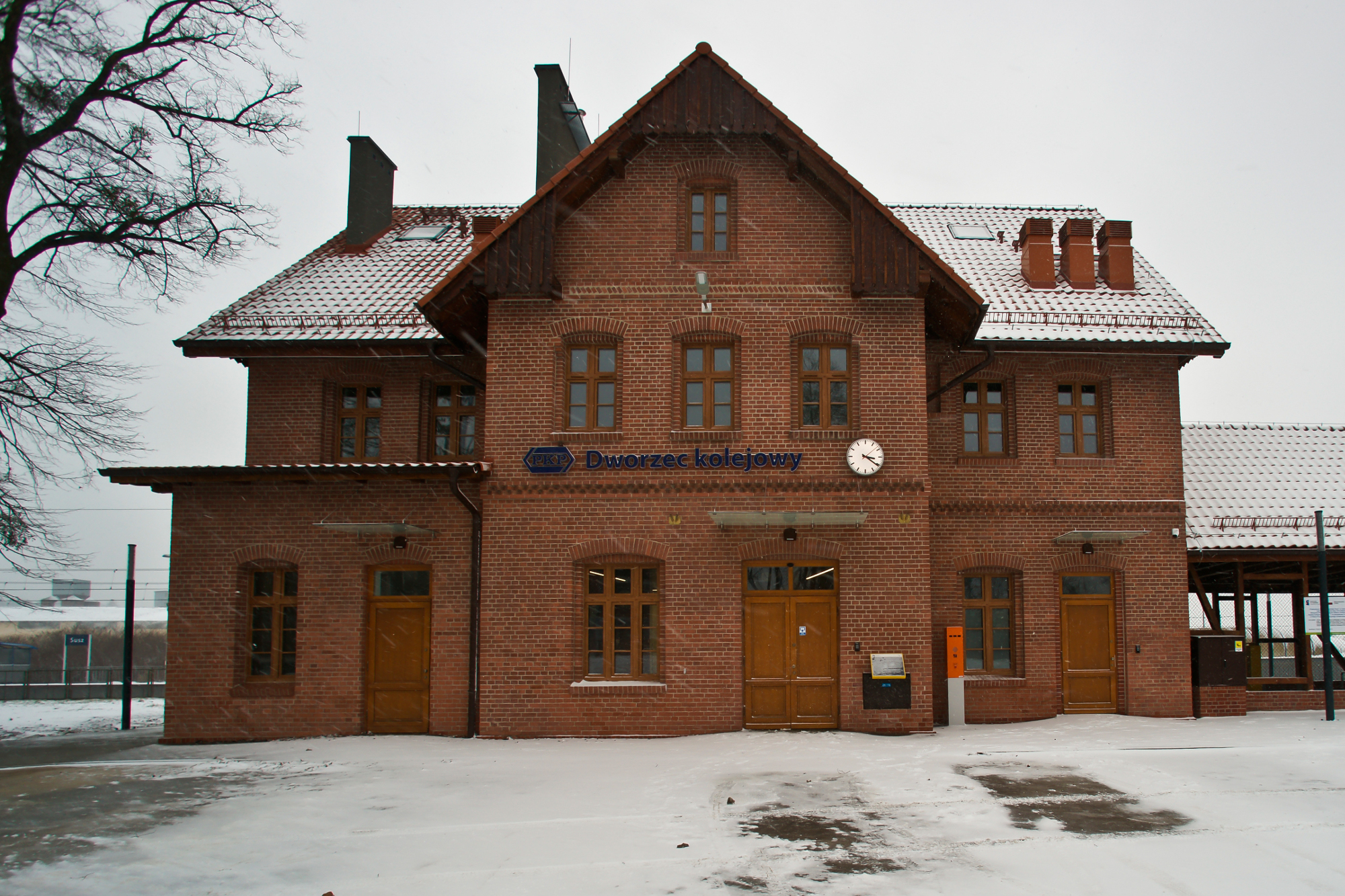 Pochodzący z 1876 roku dworzec odzyskał swoje historyczne piękno i jednocześnie stał się obiektem przystosowanym do współczesnych standardów obsługi podróżnych. Wykonano renowację elewacji budynku. Usunięto z niej wtórne warstwy malarskie, żeby odsłonić cegłę elewacyjną, którą wraz z detalami architektonicznymi poddano zabiegom pielęgnacyjnym i konserwacyjnym. Historyczny charakter dworca podkreśla nowa, odtworzona na wzór historycznej stolarka okienna i drzwiowa oraz poszycie dachowe wykonane z dachówki holenderskiej. Nowym elementem jest iluminacja z taśm LED ukrytych pod gzymsem oraz tuż pod zadaszeniem. W interesujący sposób zaaranżowano parterową część bryły dworca, pod którą urządzono wiatę rowerową.