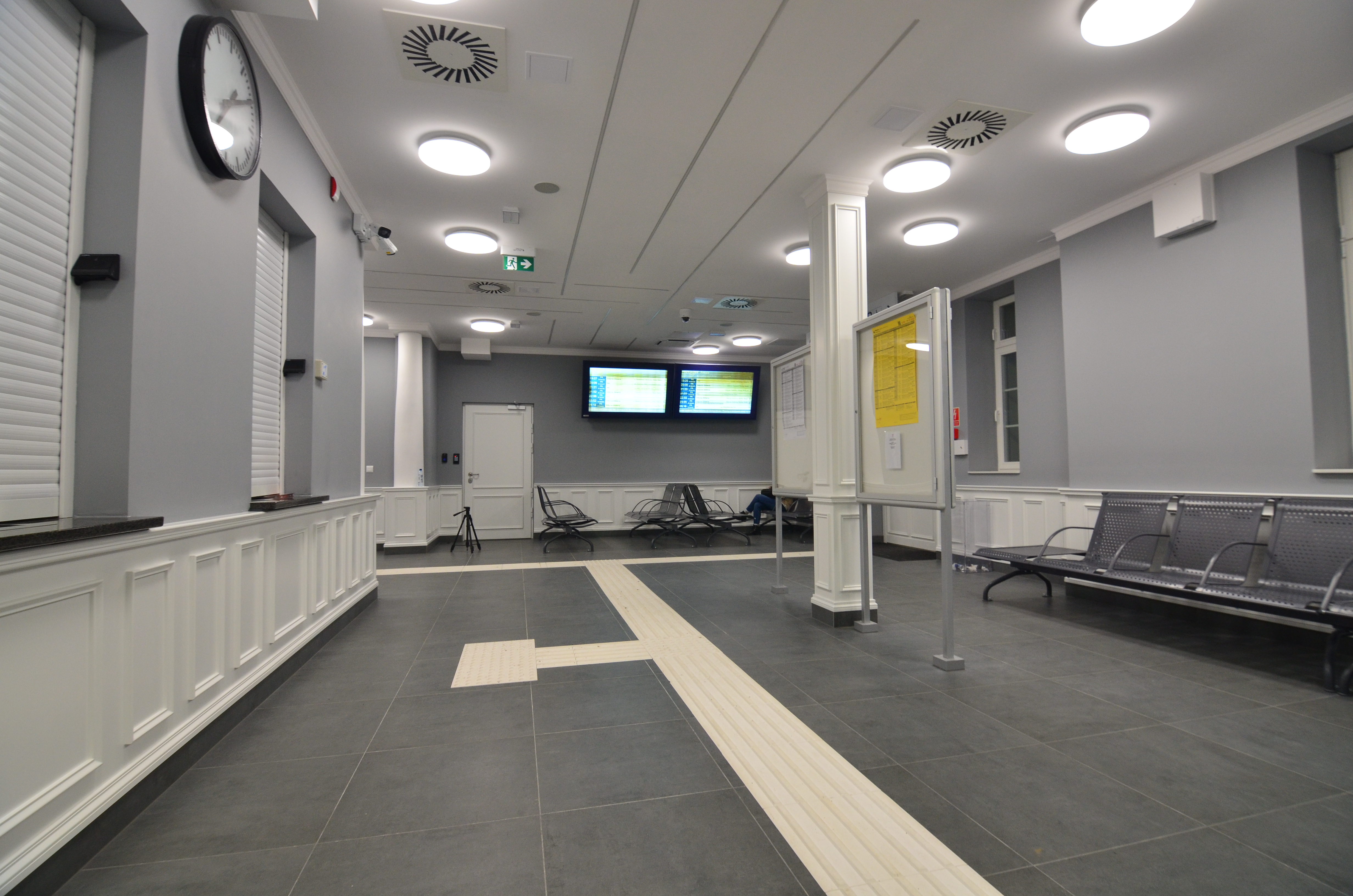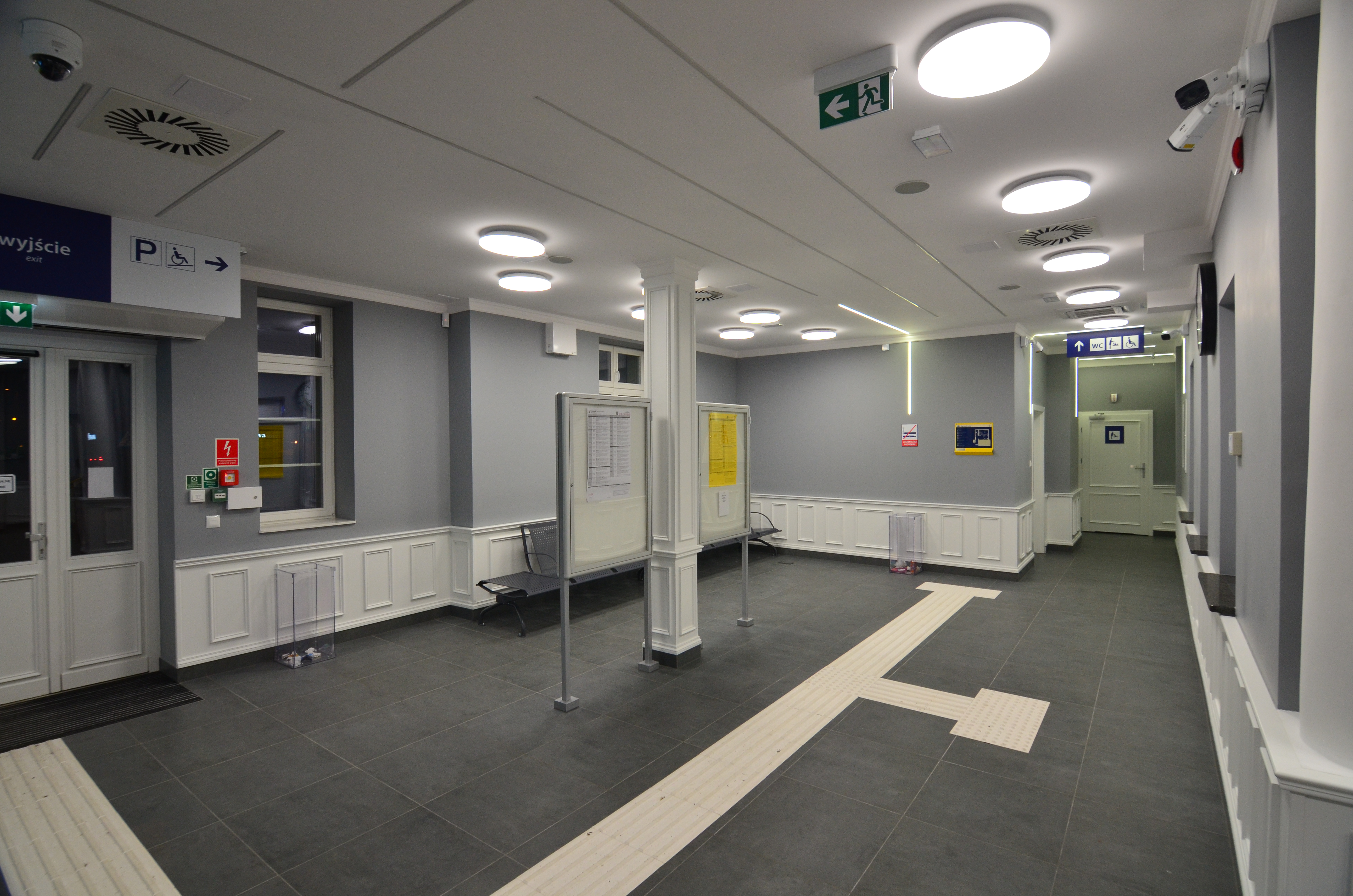 Metamorfozę, z poszanowaniem dla historycznego charakteru dworca, przeszło jego wnętrze. W holu podróżni znajdą ławki, gabloty z rozkładem jazdy, a także elektroniczne tablice przyjazdów i odjazdów pociągów. Przestrzeń obsługi podróżnych jest klimatyzowana. W jej sąsiedztwie zlokalizowano pomieszczenia kas biletowych oraz toalety. Część dworca została przeznaczona na sezonowe kasy biletowe, zaplanowano też lokale na wynajem.