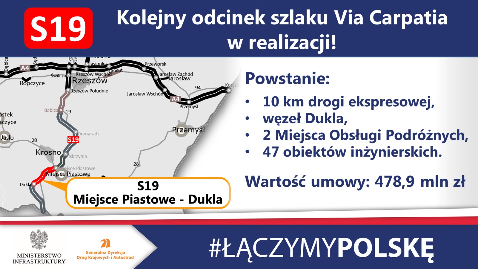 12 lipca 2021 r. zawarta została o umowa na projekt i budowę drogi ekspresowej S19 między Miejscem Piastowym a Duklą. To ósmy odcinek trasy Via Carpatia w województwie podkarpackim skierowany do realizacji. Wykonawcą prac jest firma Strabag. Wartość umowy to prawie 479 mln zł, a zakończenie inwestycji zaplanowano na połowę 2025 r.