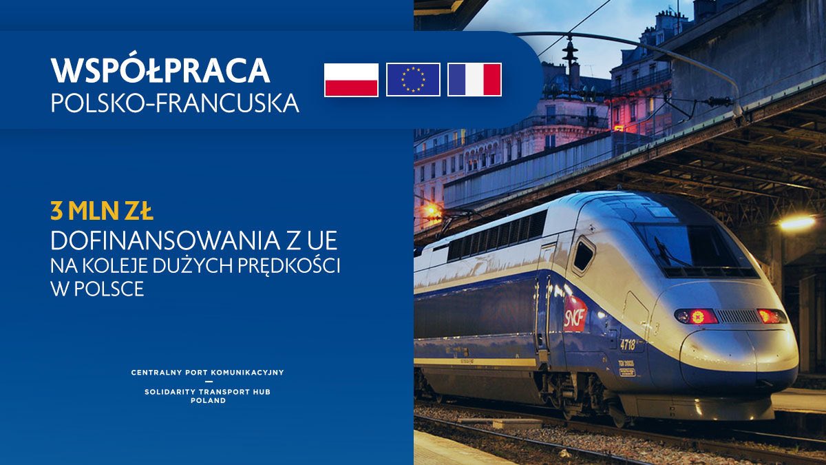 Komisja Europejska przyznała wsparcie dla współpracy Polski z Francją w przygotowaniach do planowania, projektowania i budowy Kolei Dużych Prędkości w Polsce. Koleje Francuskie SNCF będą doradzać spółce powołanej do budowy Centralnego Portu Komunikacyjnego m.in. w sprawie standardów technicznych dla budowy KDP.