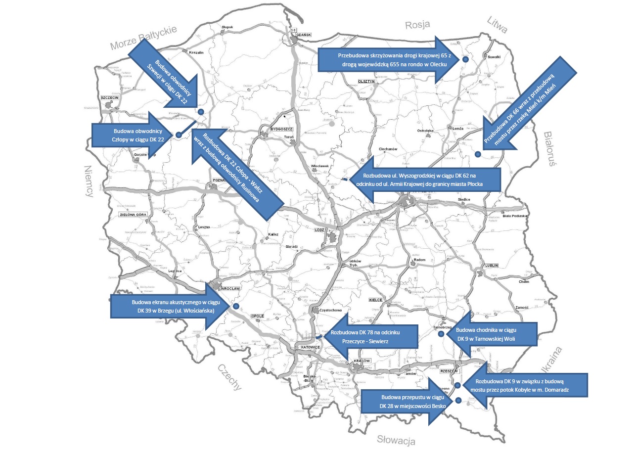 Minister Infrastruktury zatwierdził do realizacji 9 programów inwestycji i 2 aneksy do programów inwestycji dla zadań drogowych. Łączny koszt tych 11 zadań to ponad 400 mln zł. Są one związane z rozbudową odcinków dróg i wzmocnieniem ich nawierzchni do przenoszenia obciążeń o nacisku 11,5 t/oś, poprawą bezpieczeństwa uczestników ruchu drogowego poprzez przebudowę skrzyżowań, budowę chodników i sygnalizacji świetlnej, budową przepustów i mostów na drogach krajowych, zabezpieczeniem przed nadmiernym hałasem komunikacyjnym oraz wyprowadzeniem nadmiernego ruchu drogowego z obszarów zabudowanych.
