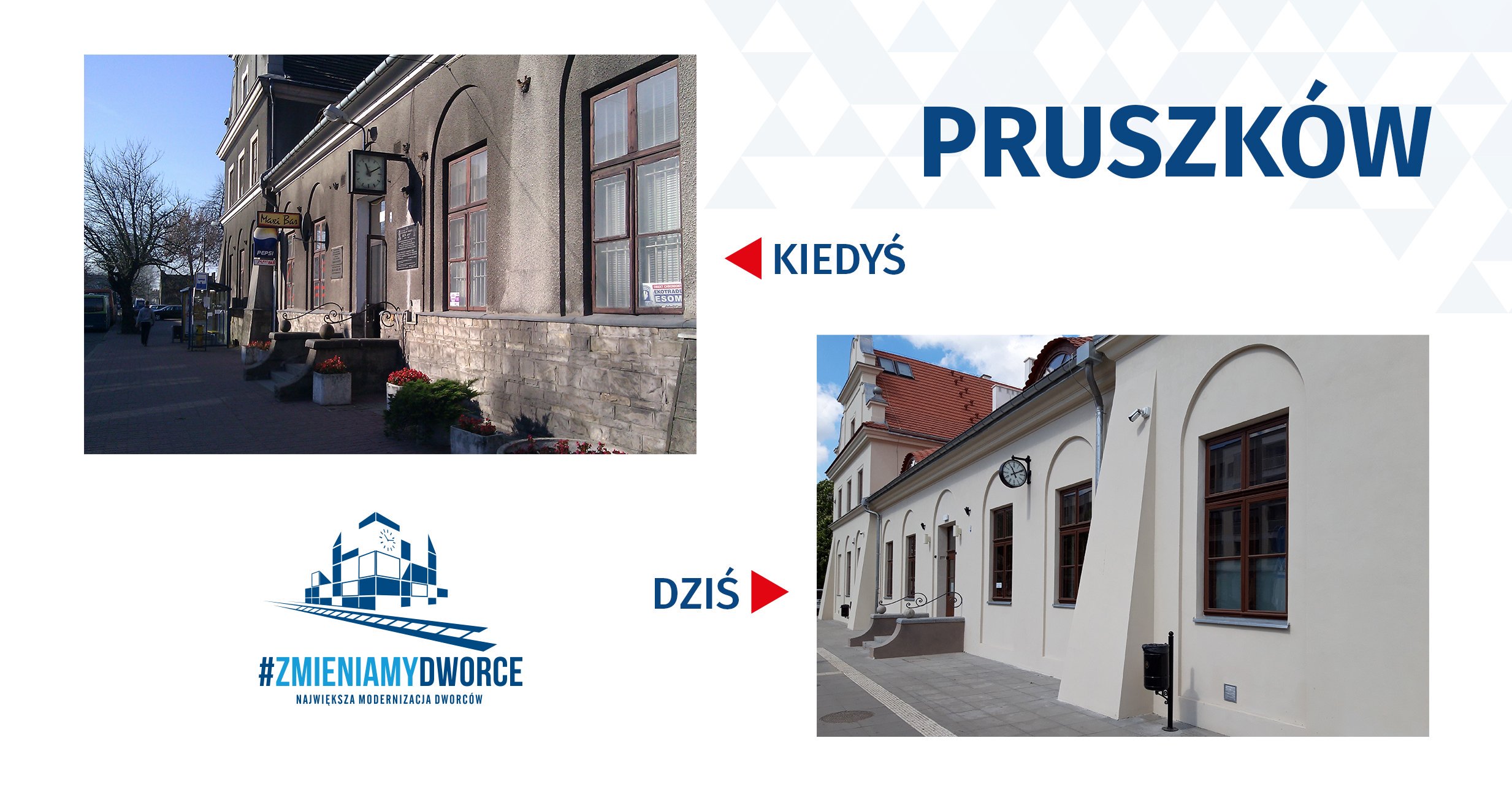 17 maja 2019 r. Polskie Koleje Państwowe SA oddały do użytku pasażerów przebudowany dworzec kolejowy w Pruszkowie. Budynek został kompleksowo zmodernizowany, zachowując przy tym swój zabytkowy charakter. Dzięki modernizacji dworzec w Pruszkowie i jego otoczenie zostały pozbawione barier architektonicznych i funkcjonalnych dla osób o ograniczonej mobilności, w tym pasażerów z niepełnosprawnościami.