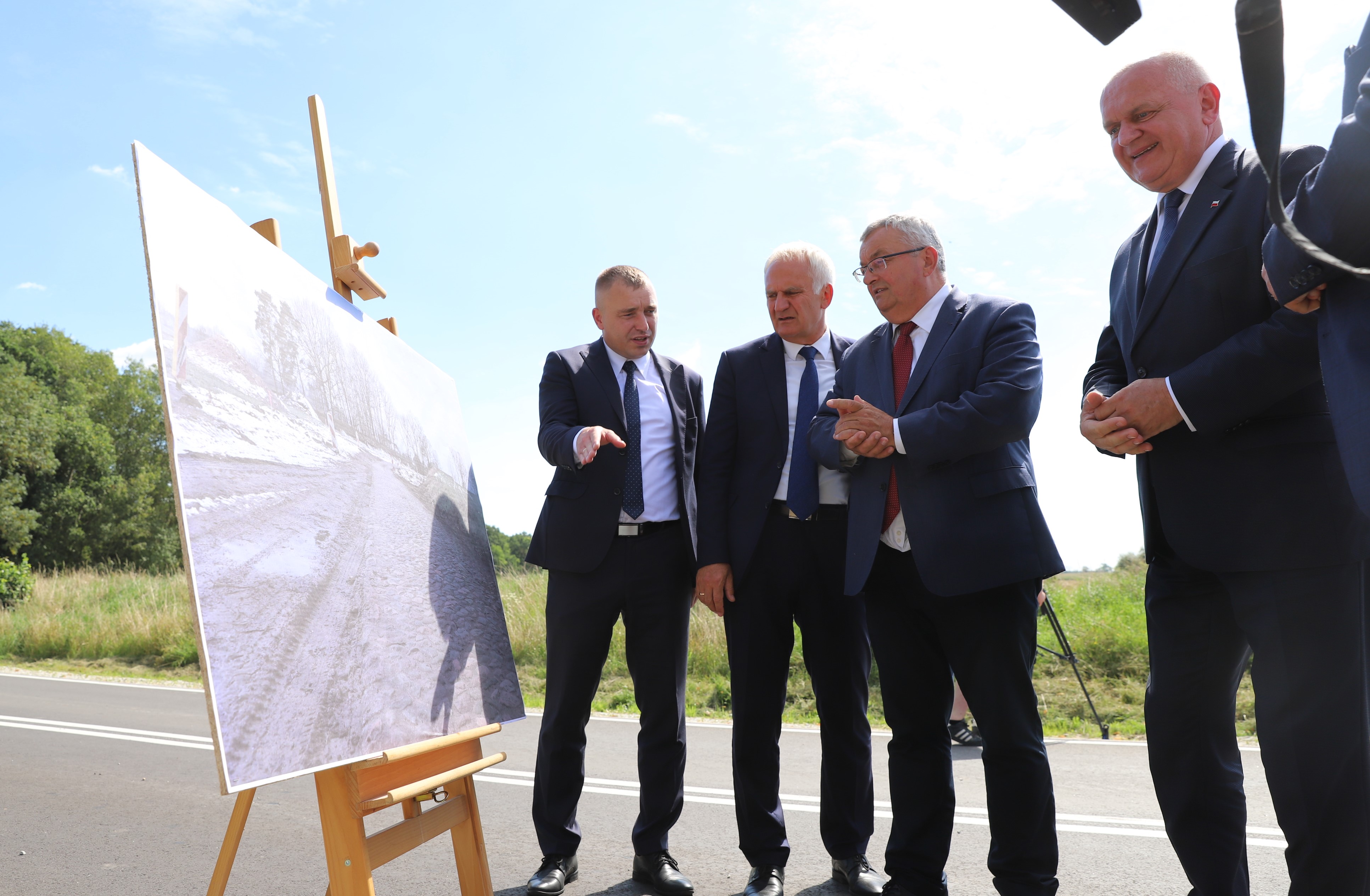 Minister A. Adamczyk podkreślił znaczenie rządowego wsparcia dla lokalnych inwestycji oraz ważną rolę samorządów, które zabiegają o to, żeby drogi gminne i powiatowe były bezpieczniejsze.