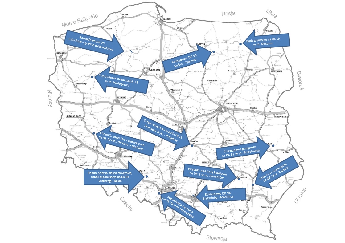Zadania te będą realizowane w 10 województwach: pomorskim, warmińsko-mazurskim, lubuskim, dolnośląskim, łódzkim, lubelskim, opolskim, śląskim, małopolskim i podkarpackim.