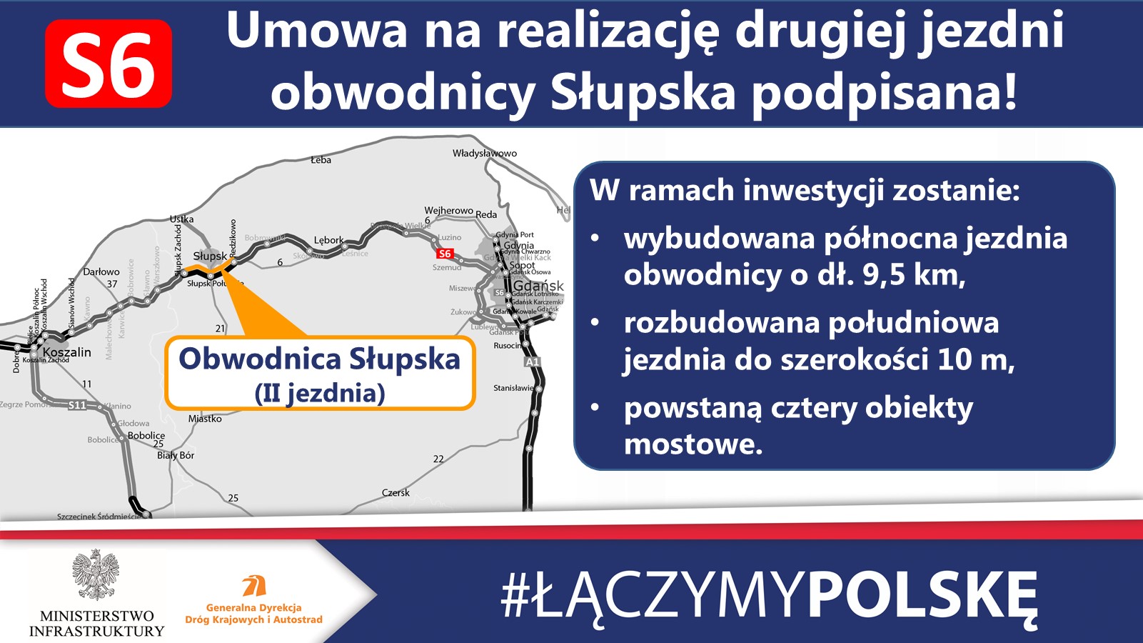 28 maja 2021 r. zostały podpisane umowy na realizację drugiej jezdni ekspresowej obwodnicy Słupska w ciągu drogi S6 oraz obwodnicy Sztabina w ciągu drogi krajowej nr 8.