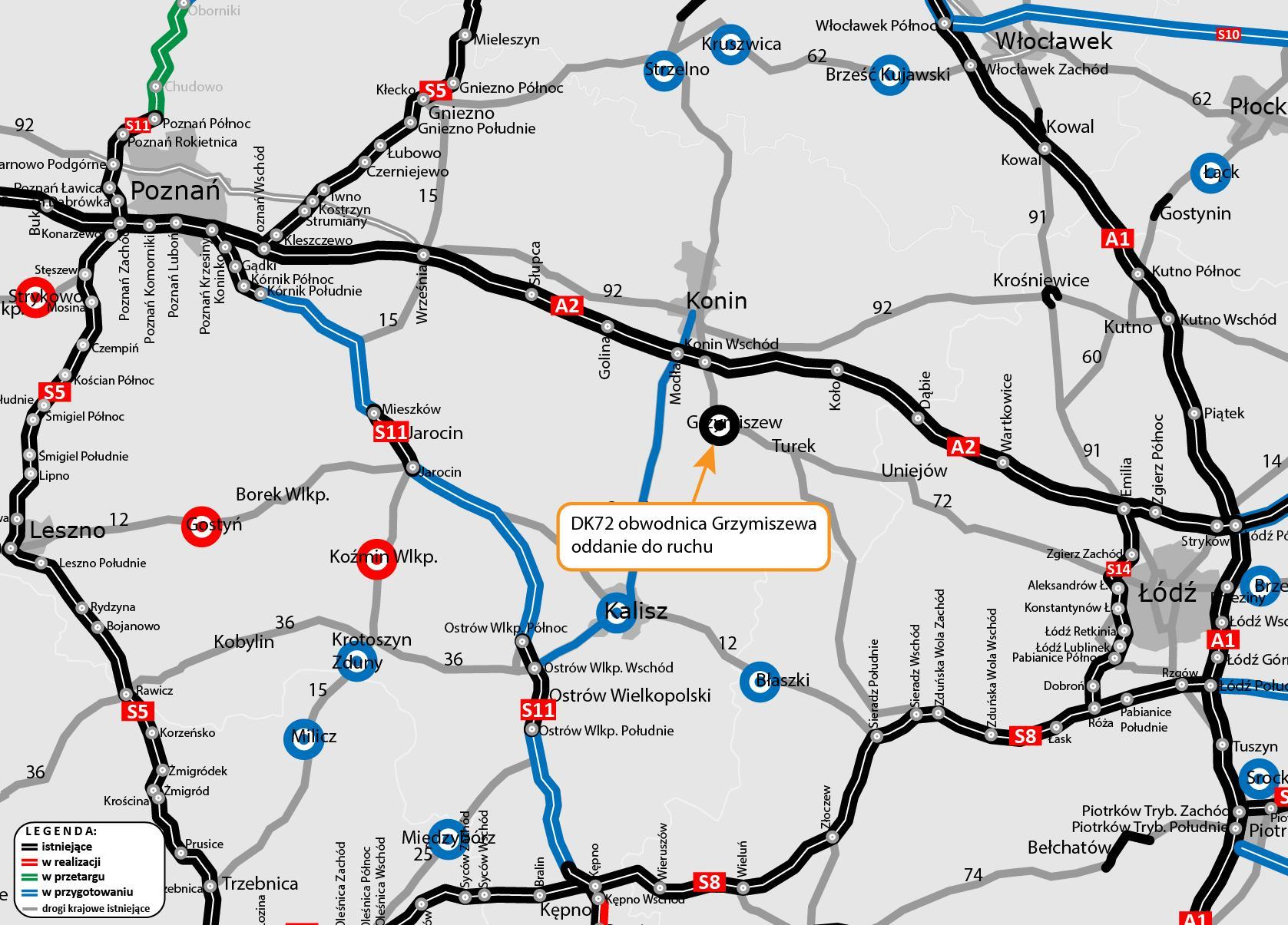Dzięki inwestycji nastąpi poprawa bezpieczeństwa zarówno mieszkańców Grzymiszewa, jak i kierowców podróżujących po DK72. Dotychczasowa trasa przechodząca przez centrum Grzymiszewa będzie służyła wyłącznie lokalnej społeczności. Wzrośnie również komfort przejazdu pomiędzy Koninem a Turkiem, a w dalszej perspektywie także z kierunku Sieradza i Łodzi.