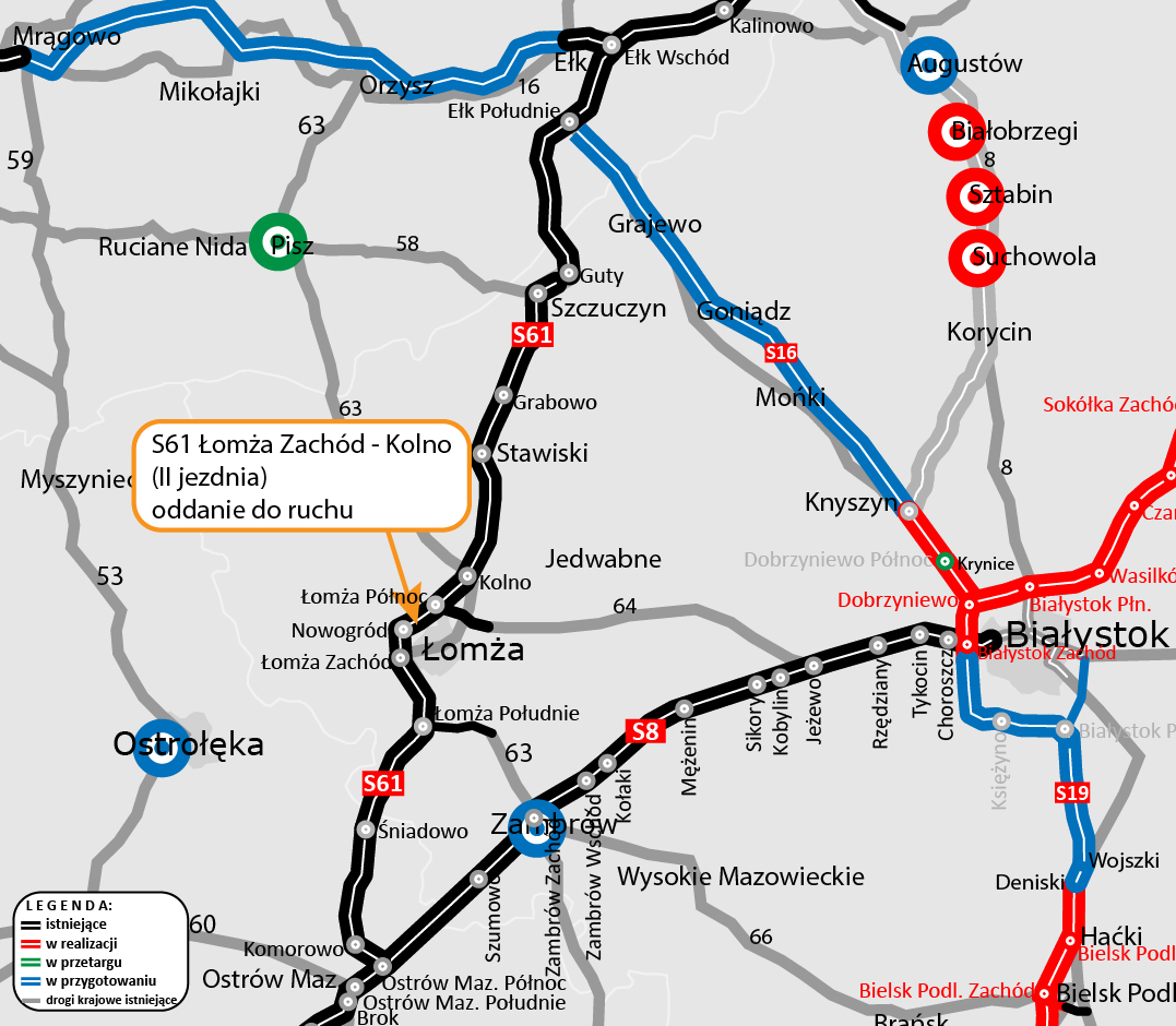 Kierowcy mogą już w pełni korzystać z dwujezdniowej obwodnicy Łomży w ciągu trasy S61. Generalna Dyrekcja Dróg Krajowych i Autostrad udostępniła do ruchu drugą jezdnię w stronę Suwałk. Tym samym w ekspresowym tempie można pokonać polską, liczącą ponad 310 km część korytarza transportowego Via Baltica od Warszawy do Budziska na granicy z Litwą.
