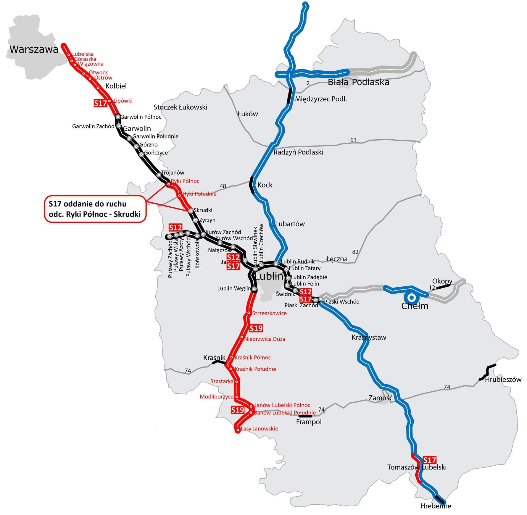 Kierowcy mają już do dyspozycji w pełni ekspresowe połączenie drogą S17 pomiędzy Garwolinem a Lublinem. 6 września 2019 r. oddano do użytku ostatni brakujący odcinek tej trasy łączący obydwa miasta, czyli obwodnicę Ryk.
