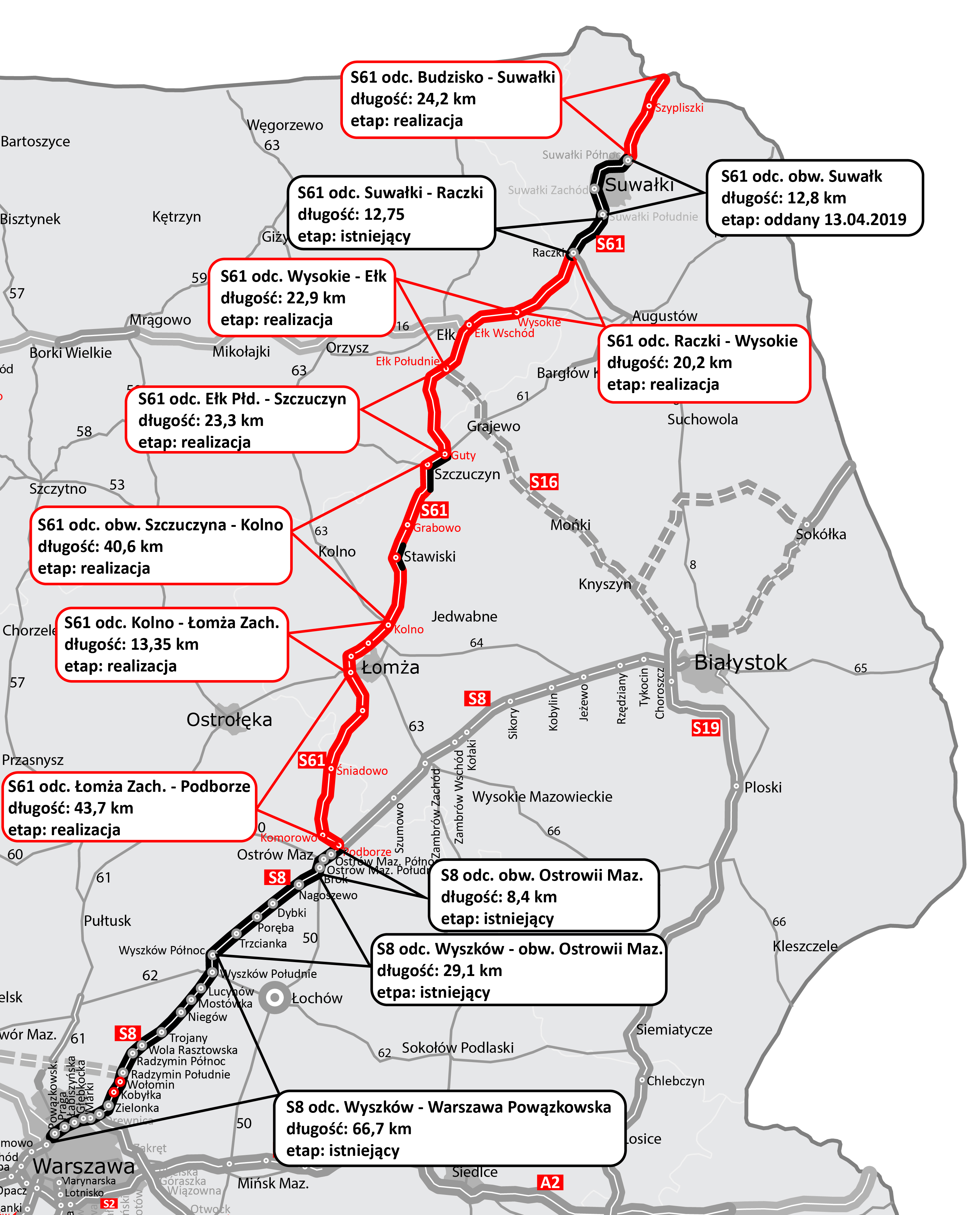 Inwestycja kończy się na węźle „Suwałki Północ”, który zostanie zrealizowany w ramach kolejnego odcinka S61 z Suwałk do granicy państwa w Budzisku. Szczegóły inwestycji: