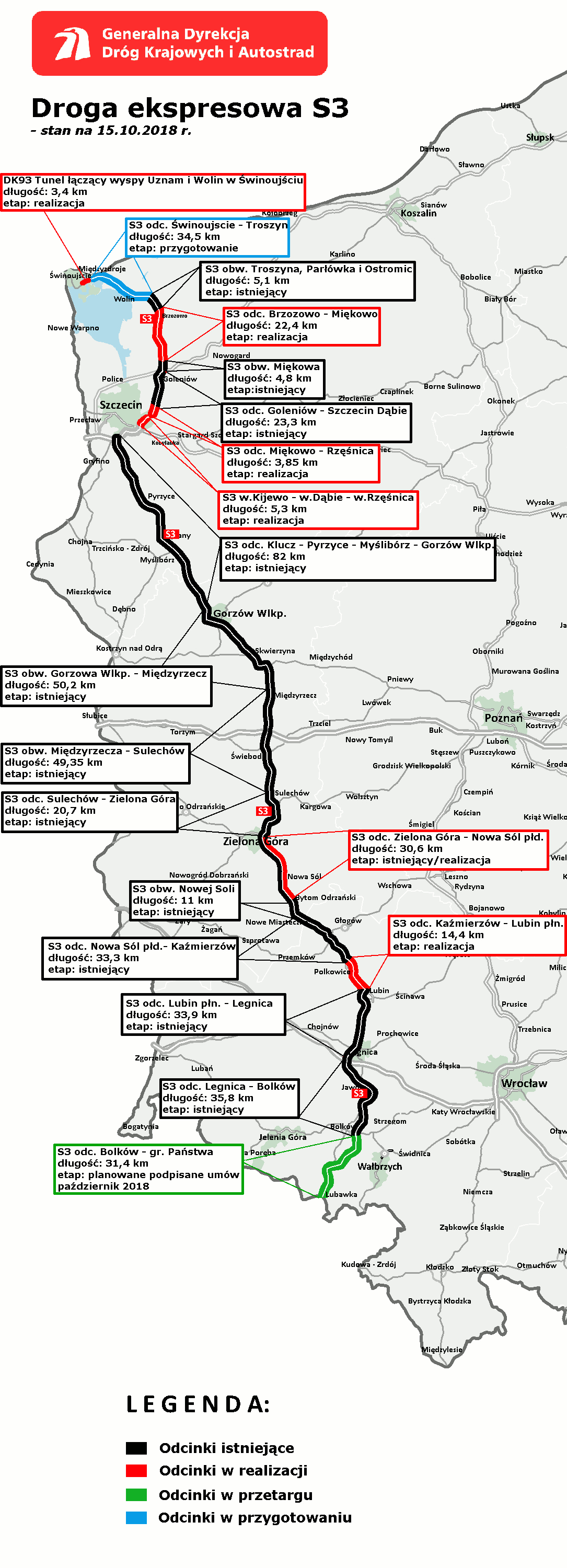 15 października 2018 r. udostępniono kierowcom dwa odcinki S3 w województwie dolnośląskim pomiędzy Legnicą i Bolkowem, których kontynuacją będzie trasa do granicy z Czechami.