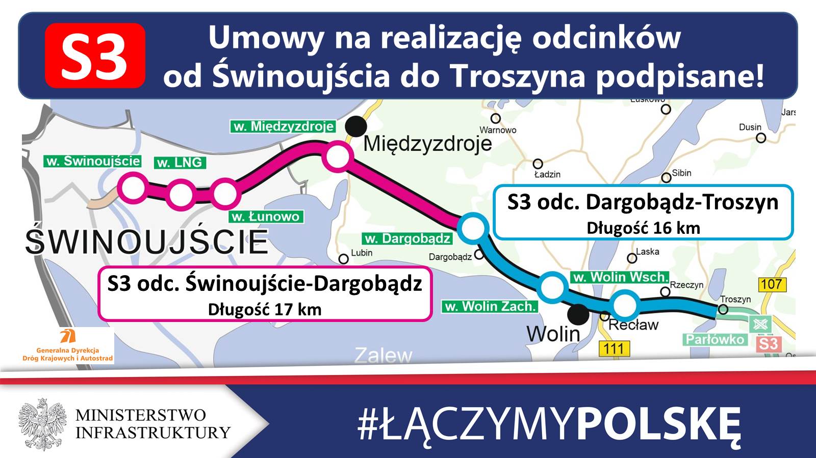 Drogę ekspresową S3 na odcinku Dargobądz – Troszyn o długości 16 km zrealizuje konsorcjum firm Polbud Pomorze, INTOP Szczecin, PRD Nowogard. Wartość tego kontraktu to 679,3 mln zł.