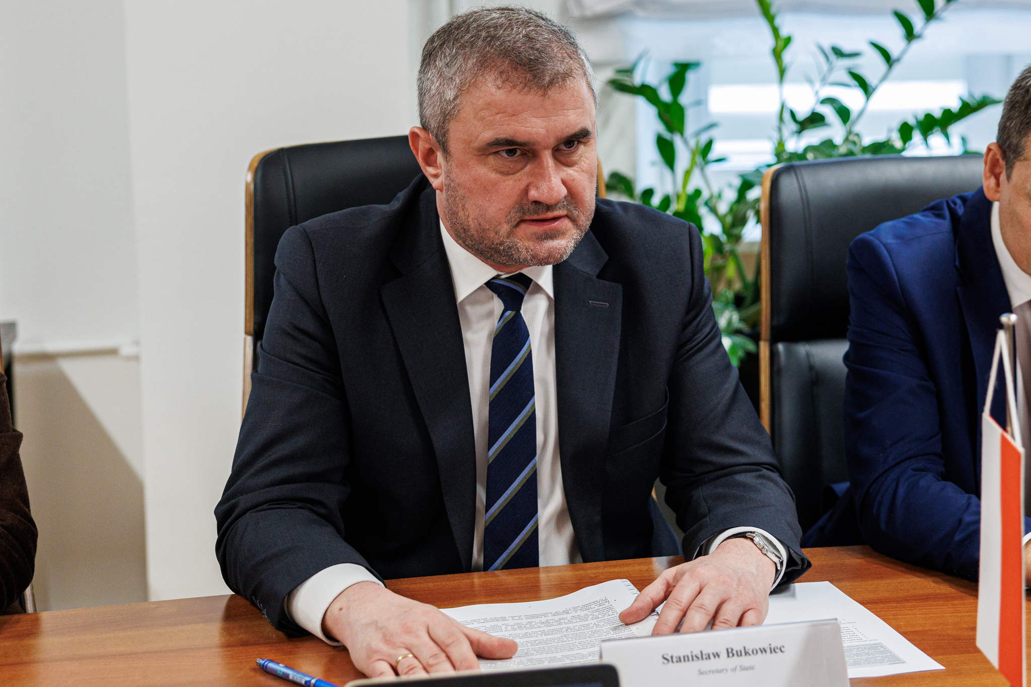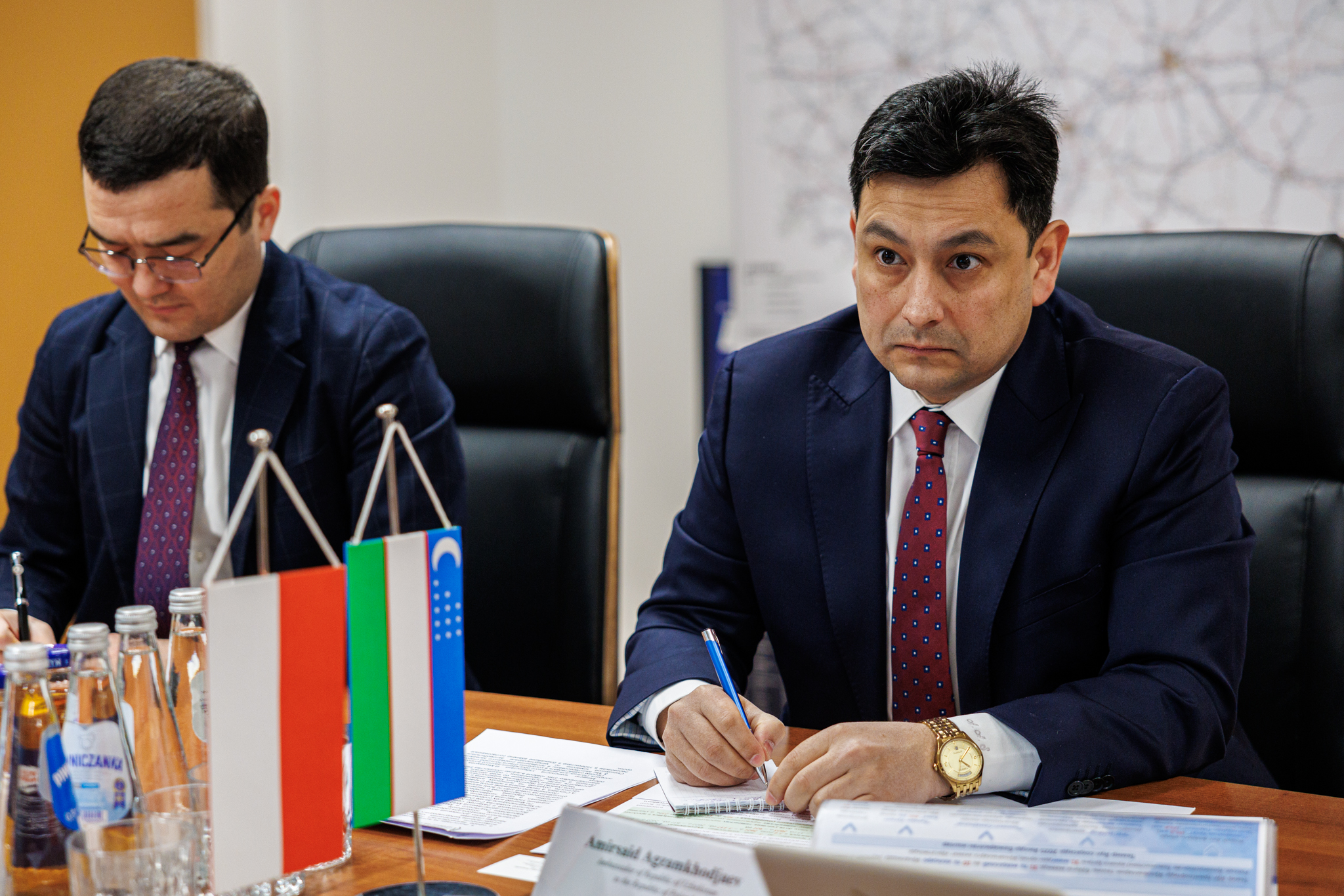 Omówienie współpracy polsko-uzbeckiej w zakresie transportu i logistyki oraz perspektyw jej rozwoju to główne tematy spotkania wiceministra infrastruktury Stanisława Bukowca z Amirsaidem Agzamchodżajewem - ambasadorem Republiki Uzbekistanu w Polsce, które odbyło się 24 lutego 2026 r.