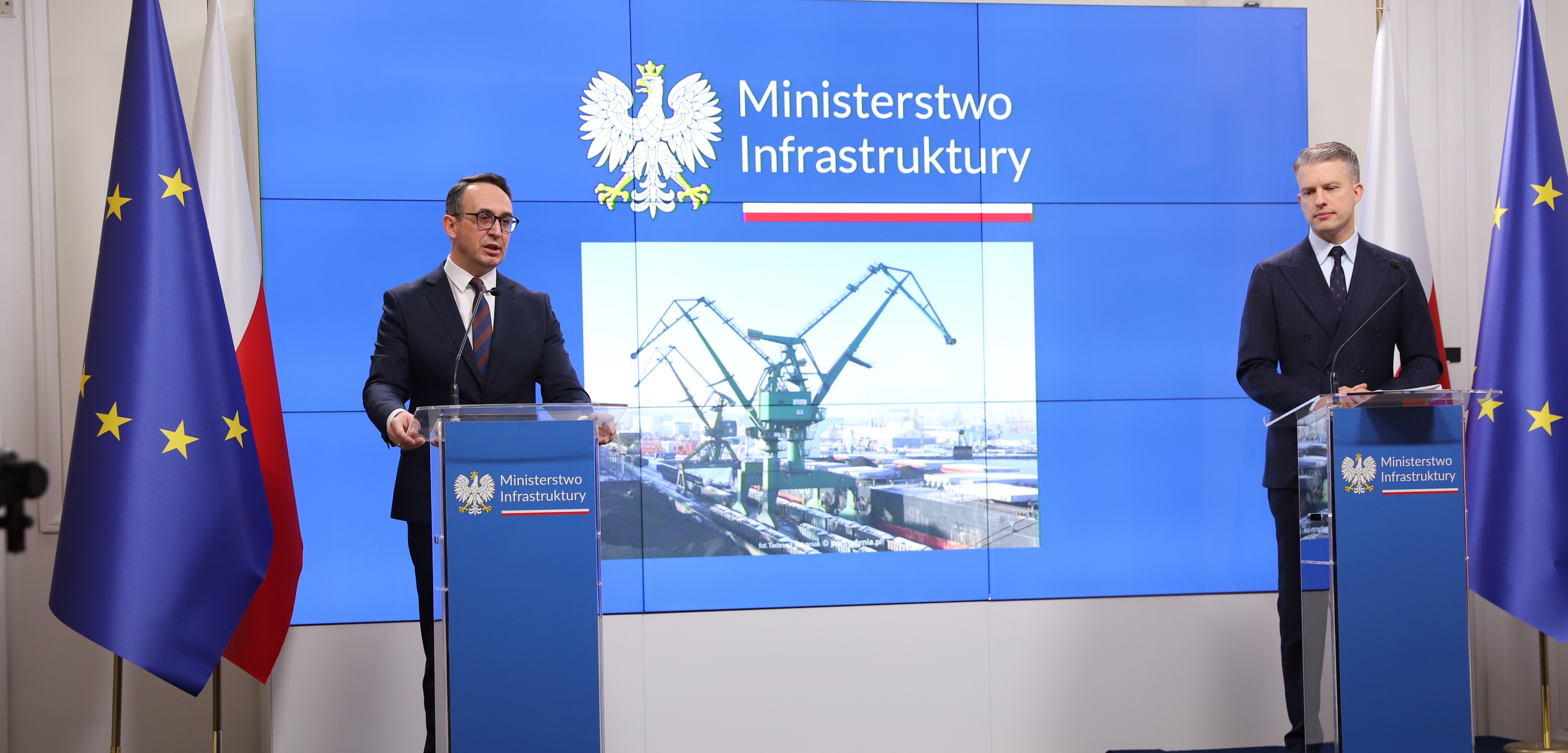 Rekordowe wyniki polskich portów morskich za rok 2024 i ambitne plany inwestycyjne na kolejne lata to główne tematy konferencji ministra infrastruktury Dariusza Klimczaka oraz wiceministra infrastruktury Arkadiusza Marchewki, która odbyła się 9 stycznia 2024 r. w Warszawie.