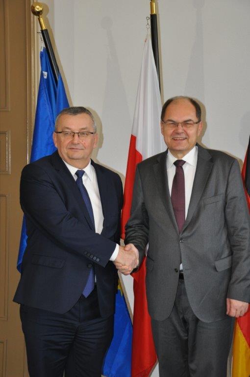 Aktualności» Minister Infrastruktury Rzeczypospolitej Polskiej, Andrzej Adamczyk i Federalny Minister Transportu i Infrastruktury Cyfrowej Republiki Federalnej Niemiec, Christian Schmidt 22 lutego 2018 r. w Berlinie, w ramach dwustronnej dyskusji, przeprowadzili konstruktywną wymianę informacji na temat polityki transportowej, projektów infrastrukturalnych będących przedmiotem wspólnego zainteresowania oraz europejskiej polityki transportowej, między innymi TEN-T oraz Via Carpatia.