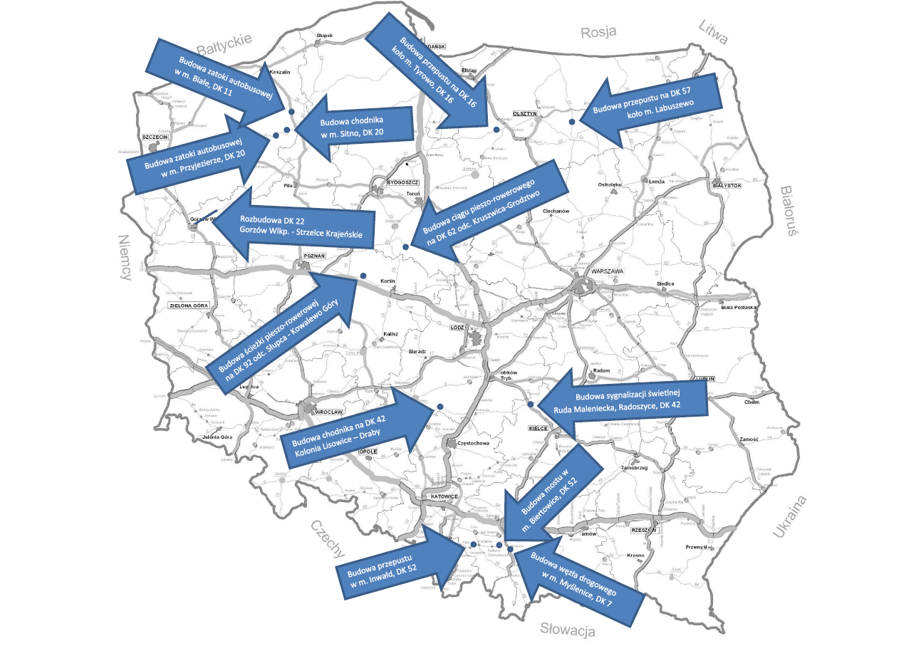 Zadania te będą realizowane w województwach: kujawsko-pomorskim, lubuskim, łódzkim, małopolskim, świętokrzyskim, warmińsko-mazurskim, wielkopolskim i zachodniopomorskim. Dla części z nich rozpoczęły się już roboty budowlane.