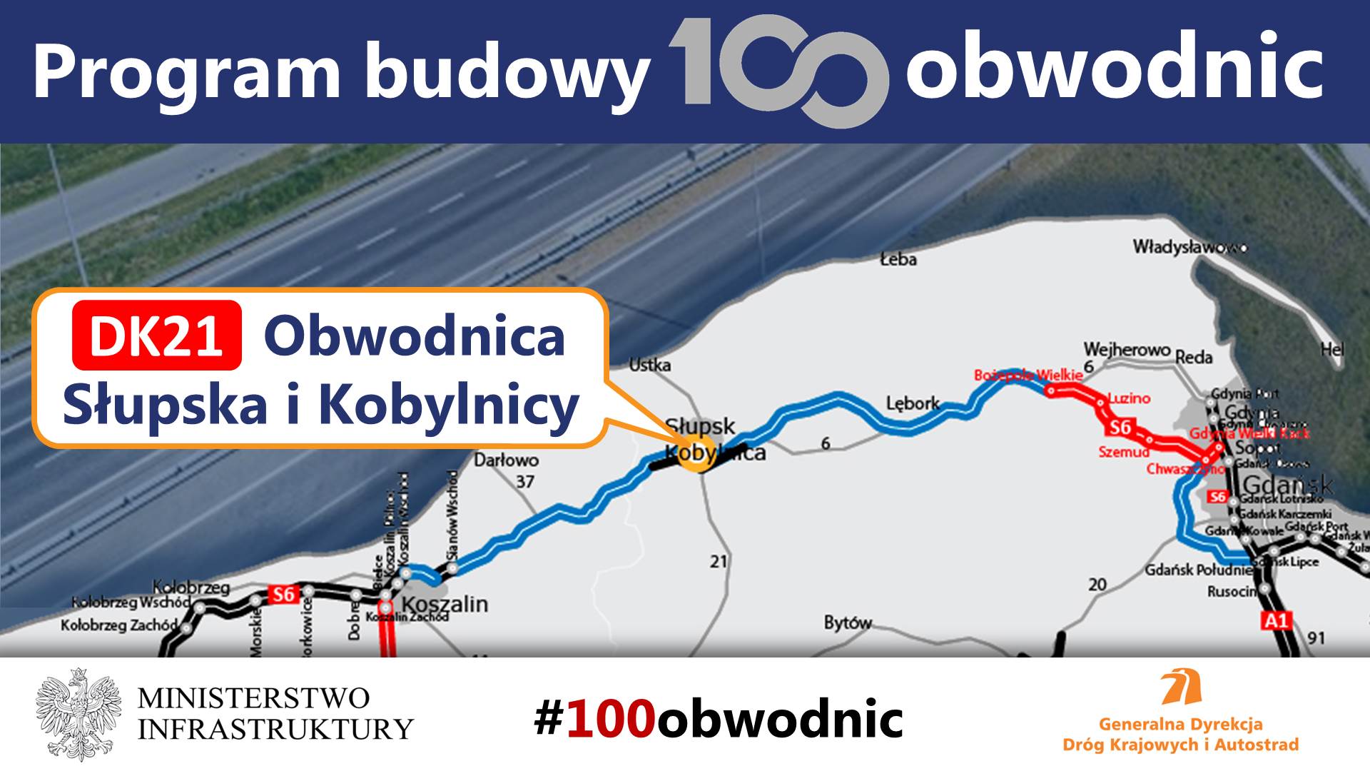 Dla obwodnicy Słupska i Kobylnicy w ciągu DK21 prowadzone są prace przygotowawcze związane z opracowaniem dokumentacji i uzyskaniem decyzji administracyjnych. Ogłoszenie przetargu na wybór wykonawcy planowane jest na II połowę 2023 r., a zawarcie umowy w II kwartale 2024 r. Roboty budowlane realizowane będą w latach 2025-2028.