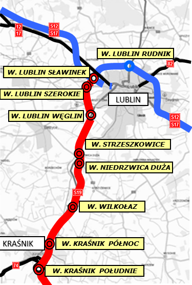 Aldesa Construcciones Polska zaprojektuje i zbuduje dwa skrajne odcinki S19: pomiędzy węzłami Lublin Węglin i Niedrzwica Duża (długość 12 km, wartość prac budowlanych 312,2 mln zł) oraz obwodnicę Kraśnika (10 km za 319,5 mln zł). Środkowy odcinek, od węzła Niedrzwica Duża do węzła Kraśnik Północ, zaprojektuje i wykona firma Mota-Engil Central Europe (ok. 20 km za 498 mln zł). Łączna wartość trzech odcinków to blisko 1,13 mld zł.