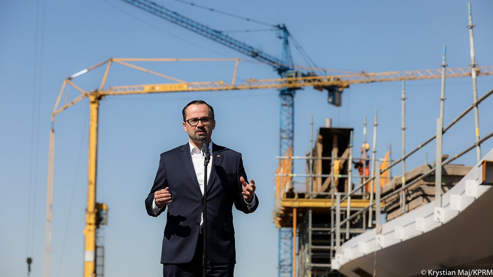 Ponad 200 mld zł na inwestycje m.in. w infrastrukturę kolejową i drogową zapowiedzieli premier Mateusz Morawiecki oraz minister infrastruktury Andrzej Adamczyk podczas wizyty 7 czerwca 2021 r. na placu budowy nowego dworca Warszawa Zachodnia.