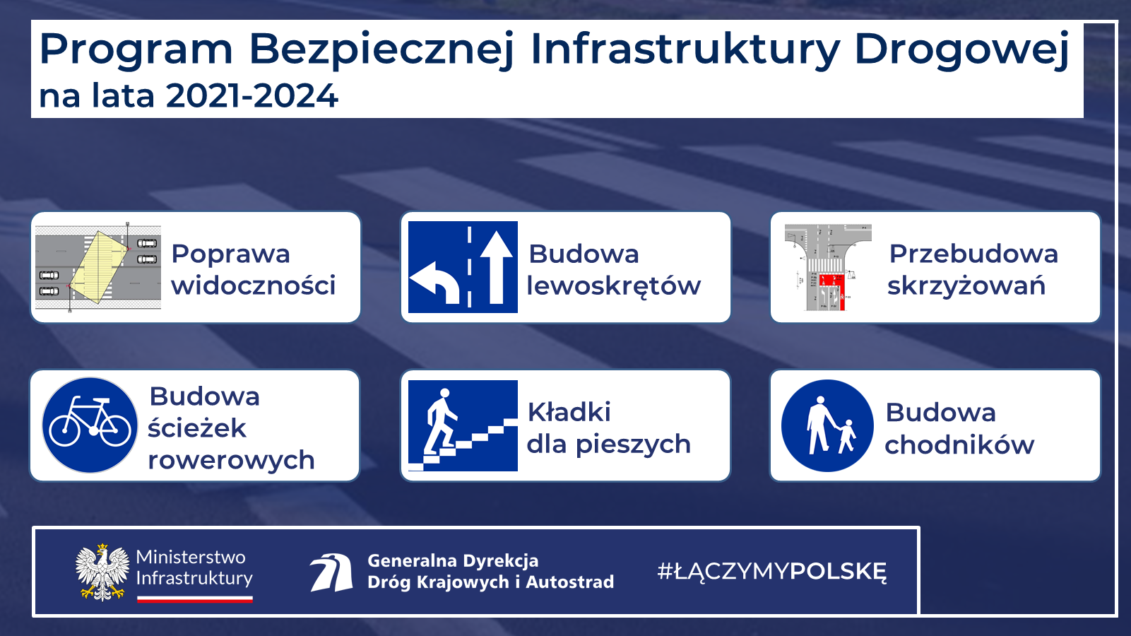 W ramach Programu Bezpiecznej Infrastruktury Drogowej 2021-2024 są realizowane m.in. takie zadania jak: