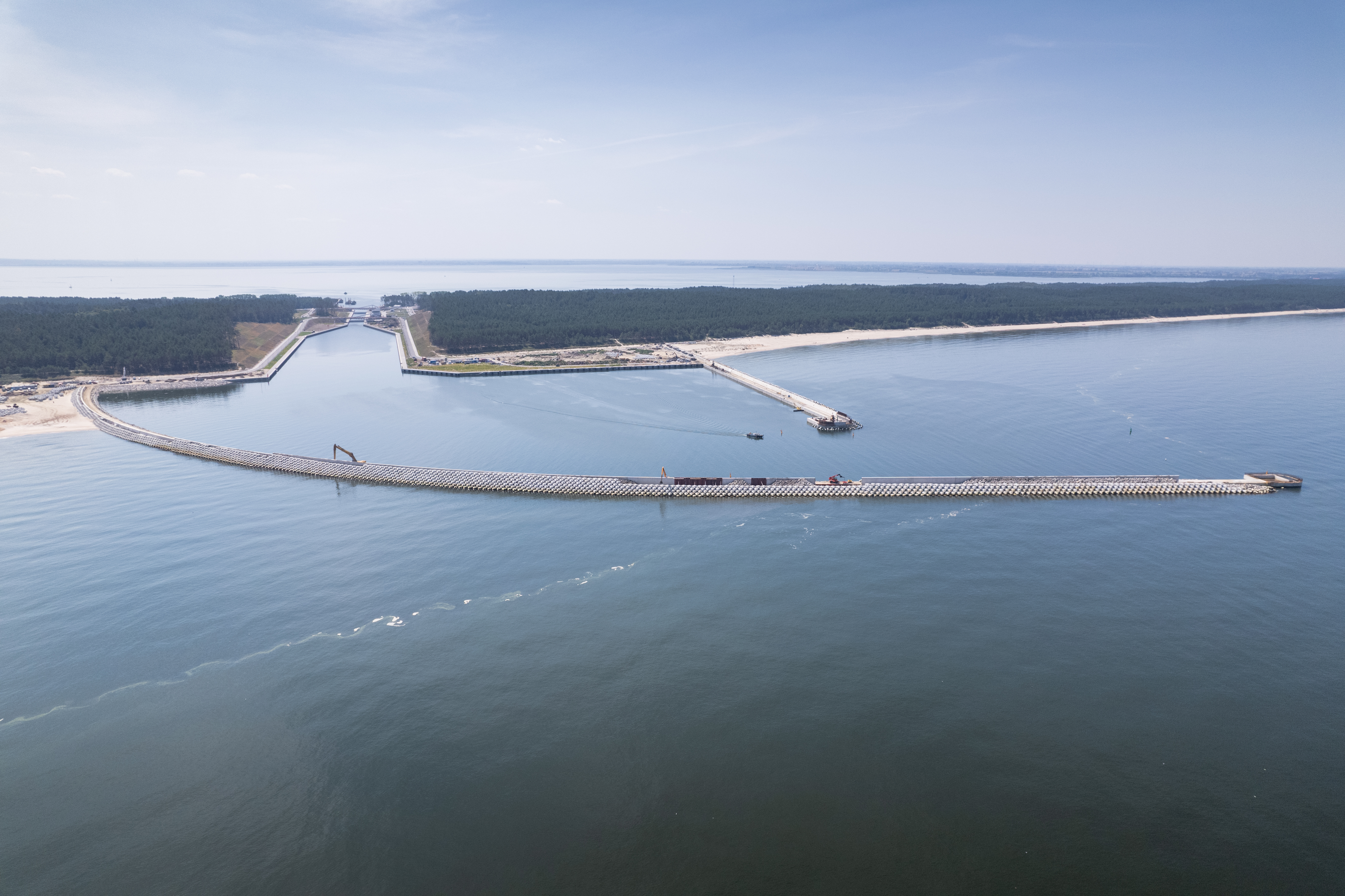 Trwają ostatnie prace na budowie Kanału Żeglugowego na Mierzei Wiślanej. Prawie wszystko gotowe jest już w części lądowej tej inwestycji, gdzie obecnie odbywają się głównie testy i odbiory techniczne. Coraz mniej do zrobienia pozostało również w rejonie obu falochronów w porcie osłonowym na Zatoce Gdańskiej oraz przy sztucznej wyspie na Zalewie Wiślanym.