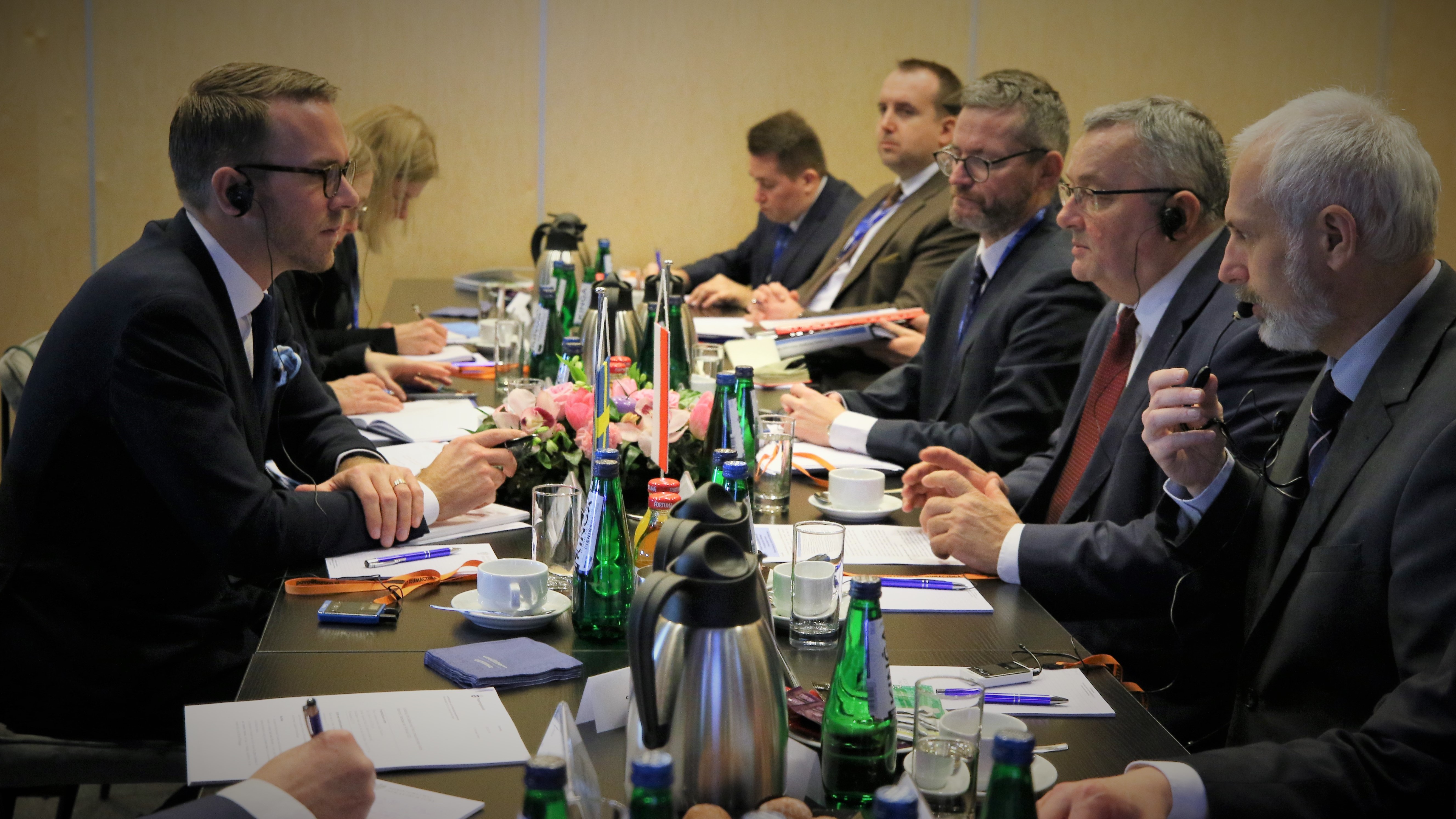 Podczas spotkania ministra Andrzeja Adamczyka i wiceministra Grzegorza Witkowskiego z ministrem infrastruktury i mieszkalnictwa Szwecji Andreasem Carlsonem omówiono m.in. stan unijnych prac nad rozporządzeniem ws. sieci TEN-T, także w kontekście pomocowych korytarzy solidarności dla Ukrainy oraz sprawy współpracy w zakresie gospodarki morskiej. Z uwagi na to, że Szwecja obecnie przewodniczy pracą Rady UE, omówiona została także tematyka współpracy na forum unijnym.