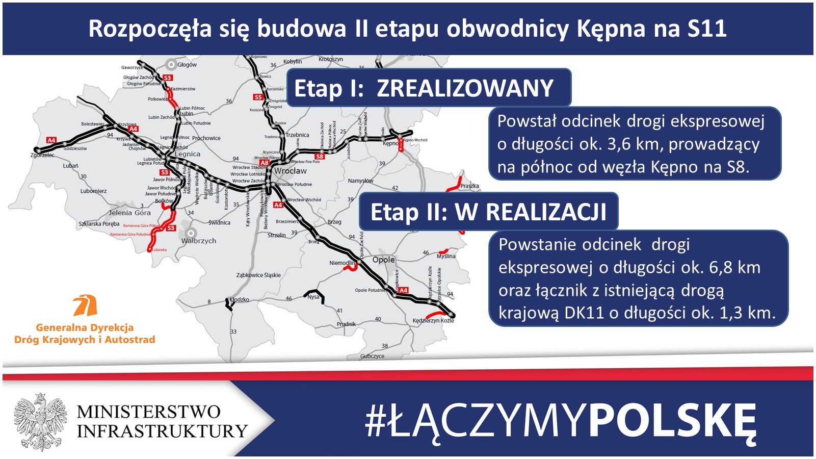 23 sierpnia 2019 r. zainaugurowano prace budowlane na drugim etapie obwodnicy Kępna na S11 w województwie wielkopolskim.