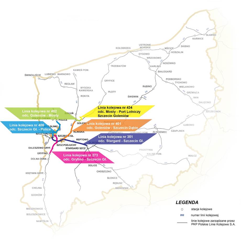 Budowa Szczecińskiej Kolei Metropolitalnej z wykorzystaniem istniejących odcinków linii kolejowych nr 406, 273, 351: