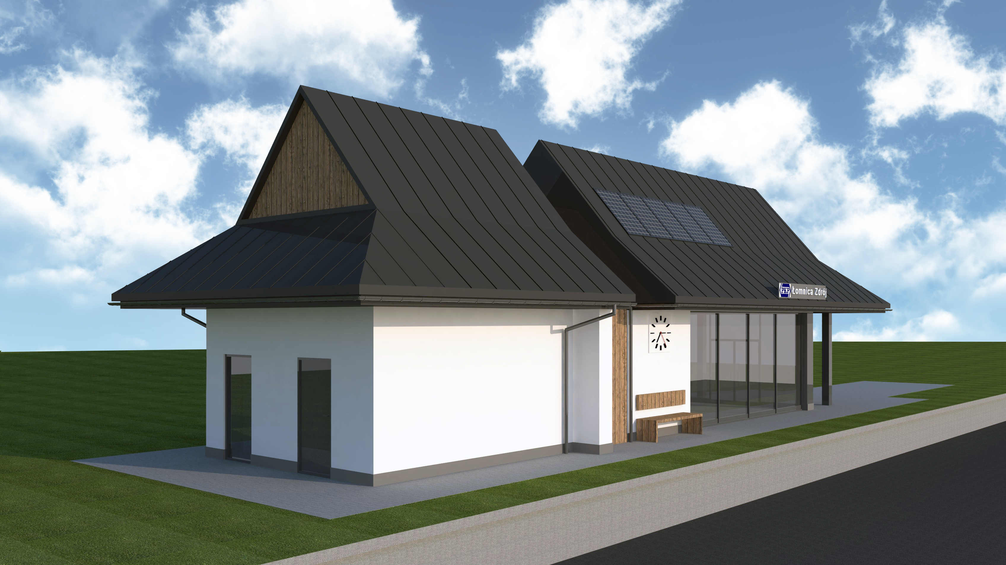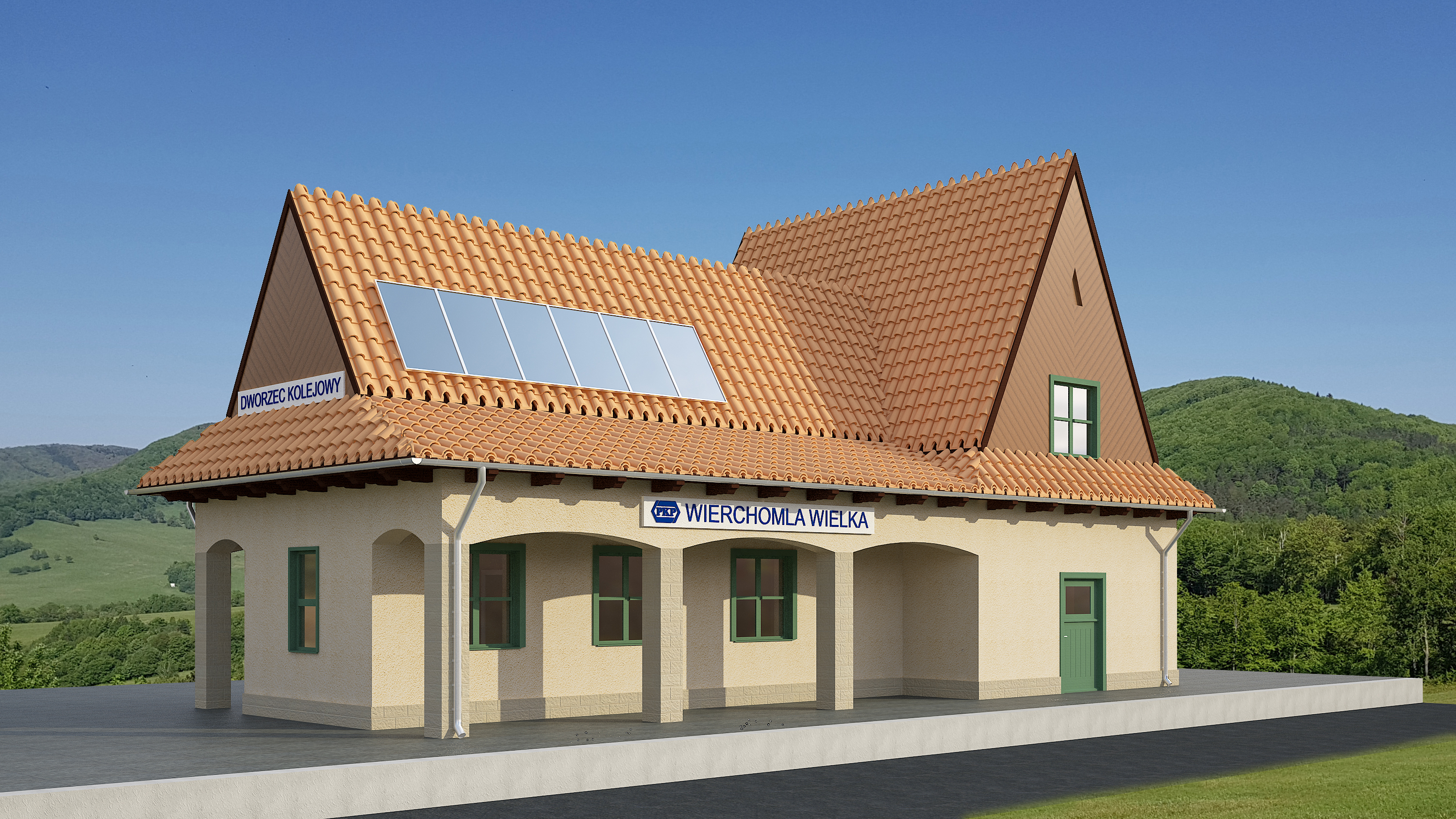 Przebudowany zostanie również zabytkowy dworzec w Wierchomli Wielkiej. Renowację przejdzie elewacja budynku wraz ze znajdującymi się na niej detalami architektonicznymi. Odświeżona zostanie kamienna okładzina kolumn podtrzymujących wiatę. Elewacja zyska również bardziej stonowaną kolorystkę, do której dobrano dachówkę w kolorze naturalnej cegły oraz stolarkę okienną i drzwiową w kolorze zielonym.